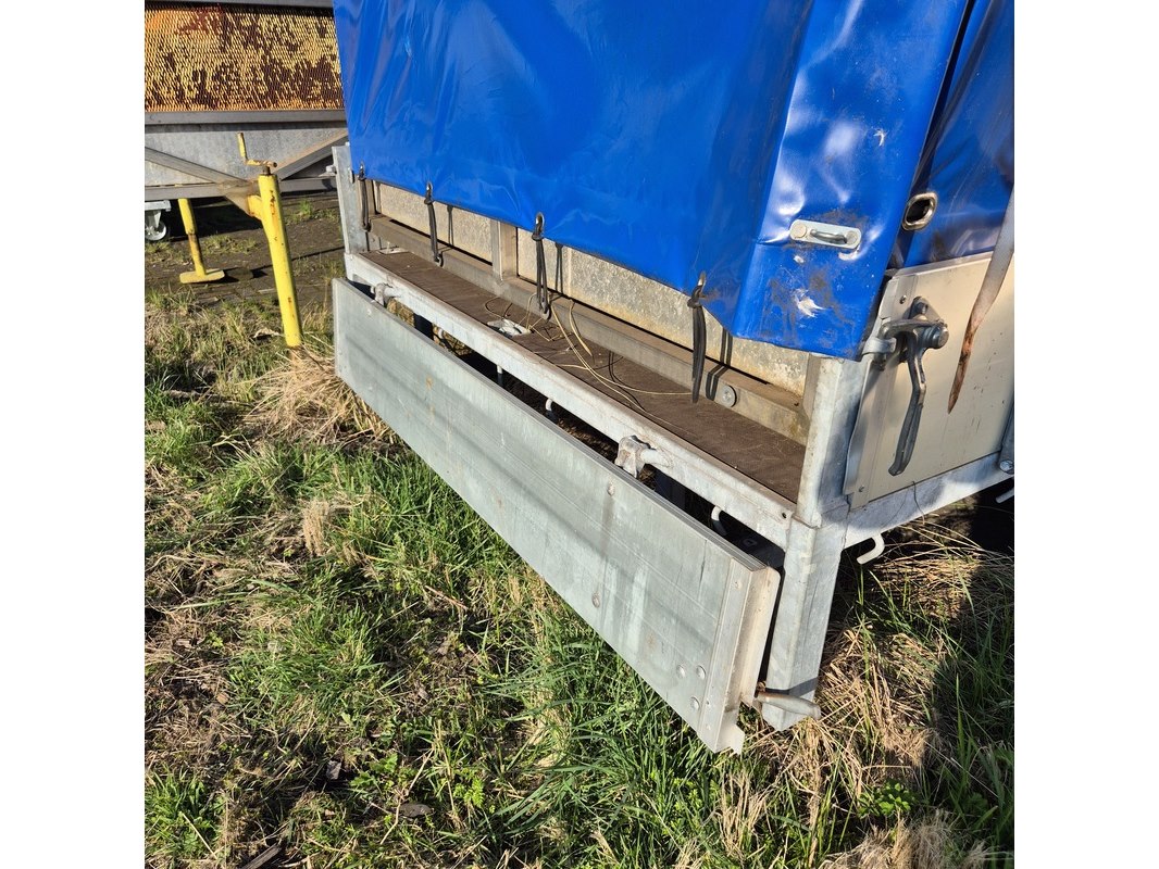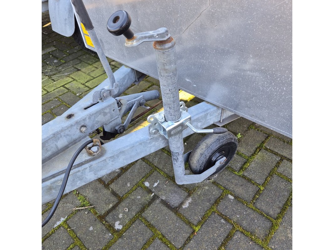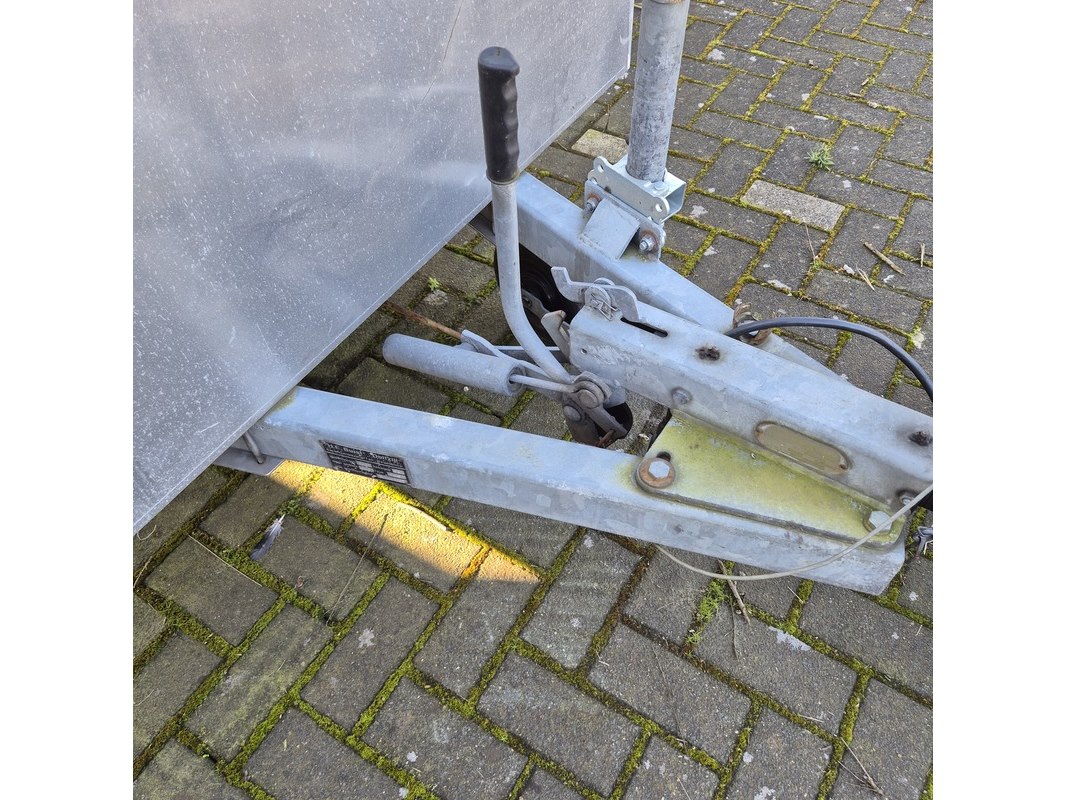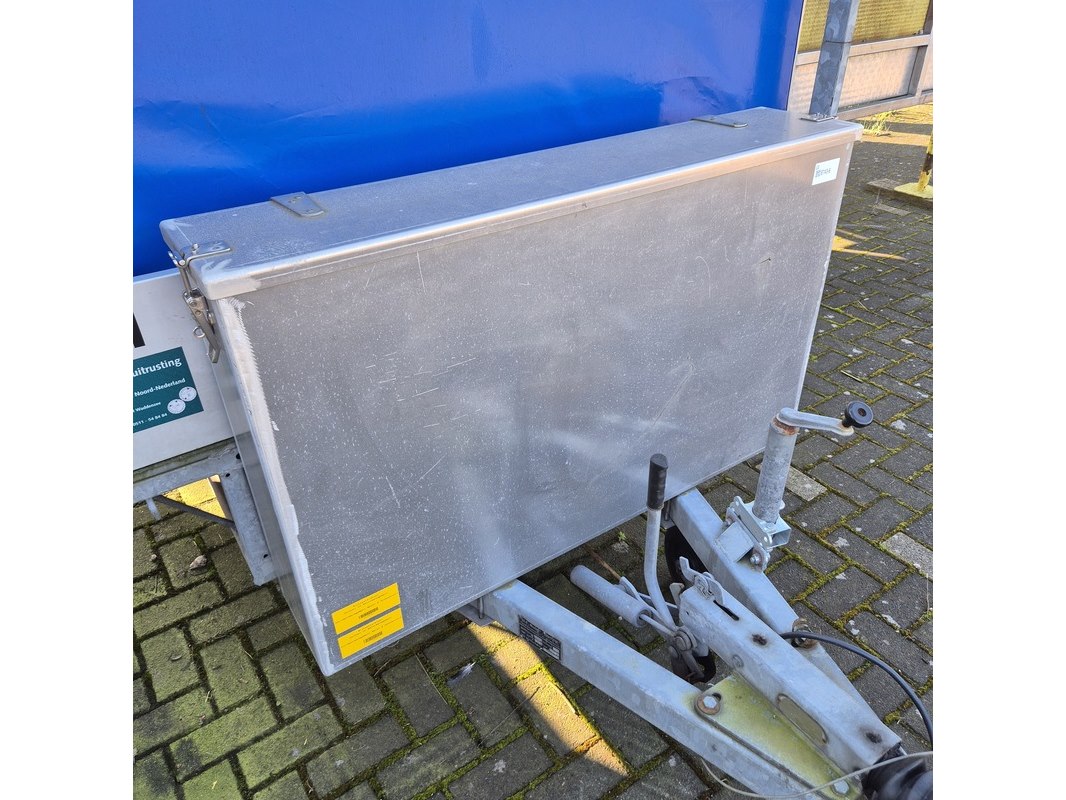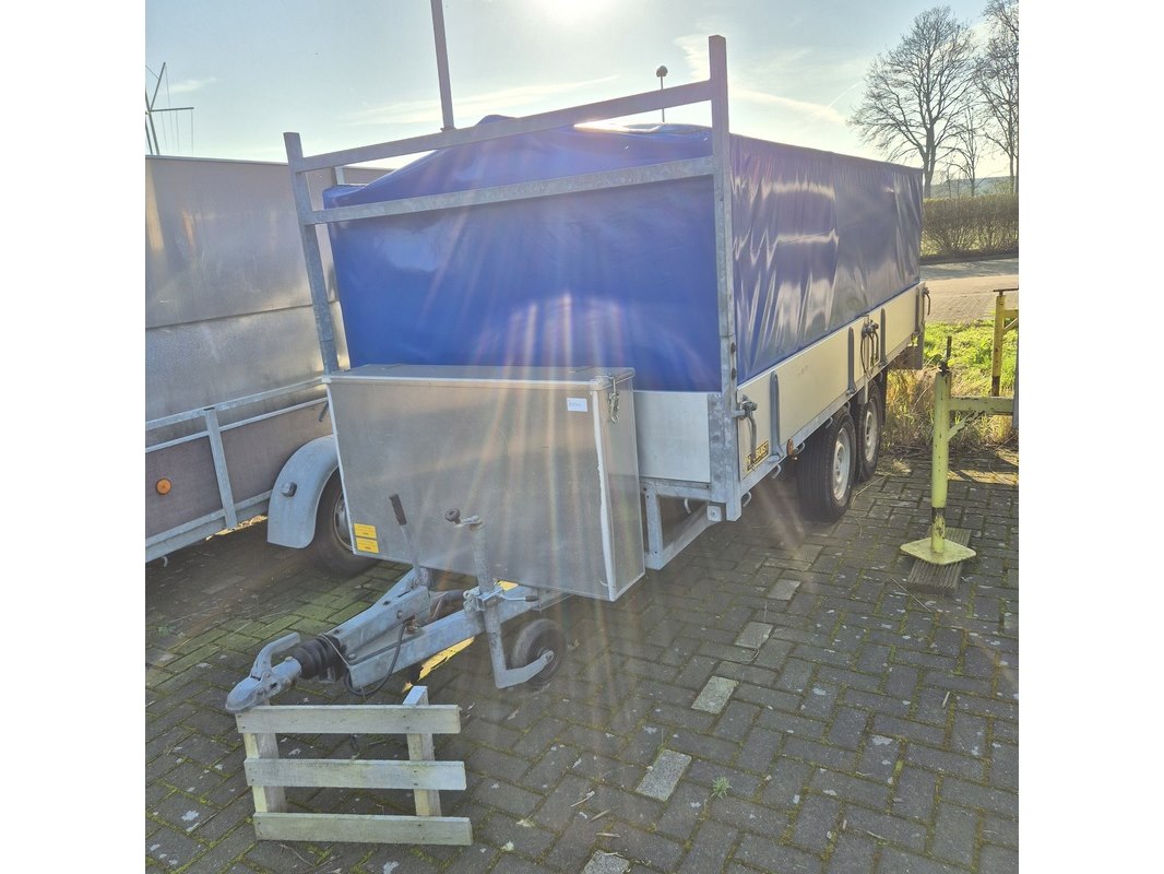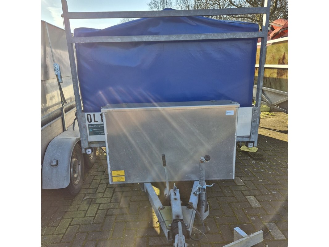Merk: Buist Product: Aanhangwagen met opzetbak en olieschermen Afmeting: LxB ca. 521 x 190 cm. BouwJaar: 1993 Conditie: gebruikt Specificaties: Kenteken: WK-01-VD VIN nummer: onbekend Eerste toelating nationaal: 31-12-1993 Massa ledig voertuig: 610 kg Laadvermogen: 1390 kg Opties e.d. Opbergkist aan voorzijde Waargenomen gebreken: Gebruikssporen rondom Technische staat en werking onbekend. De aangegeven lengte is de afstand van hart koppeling tot achterzijde van de aanhanger.