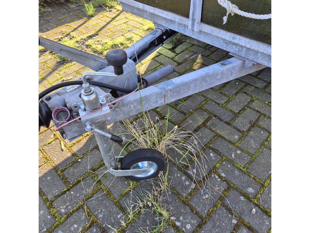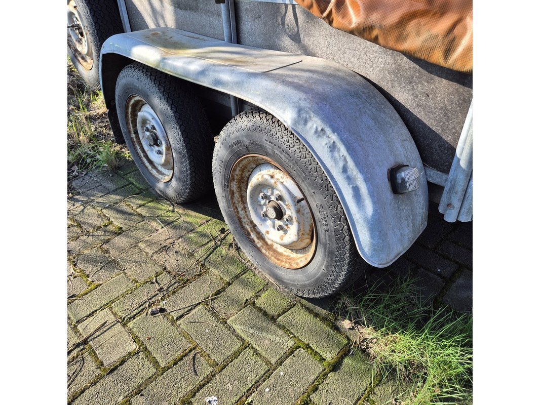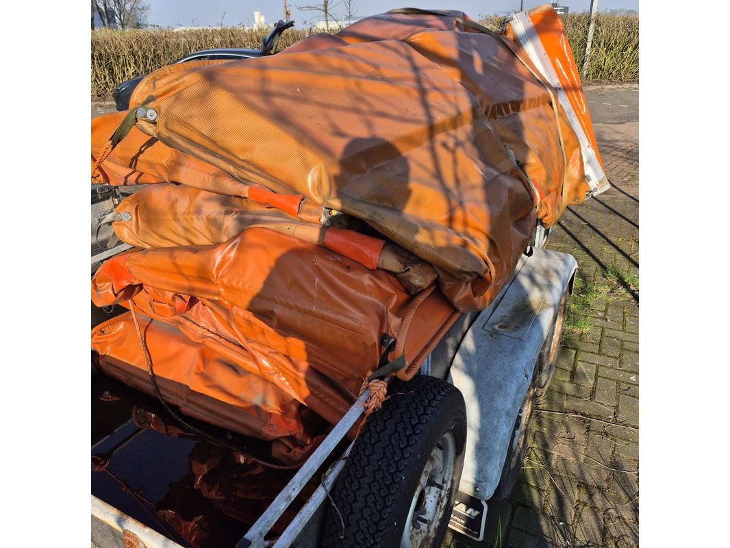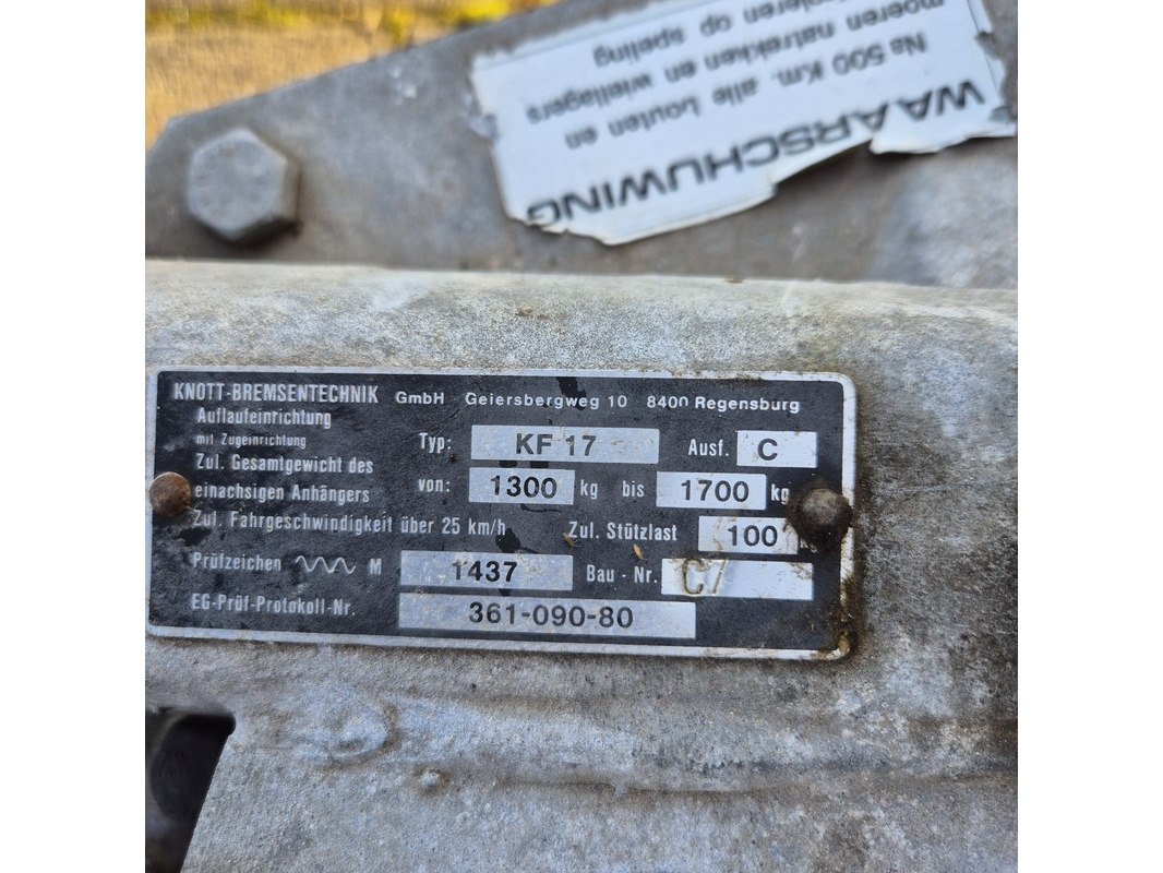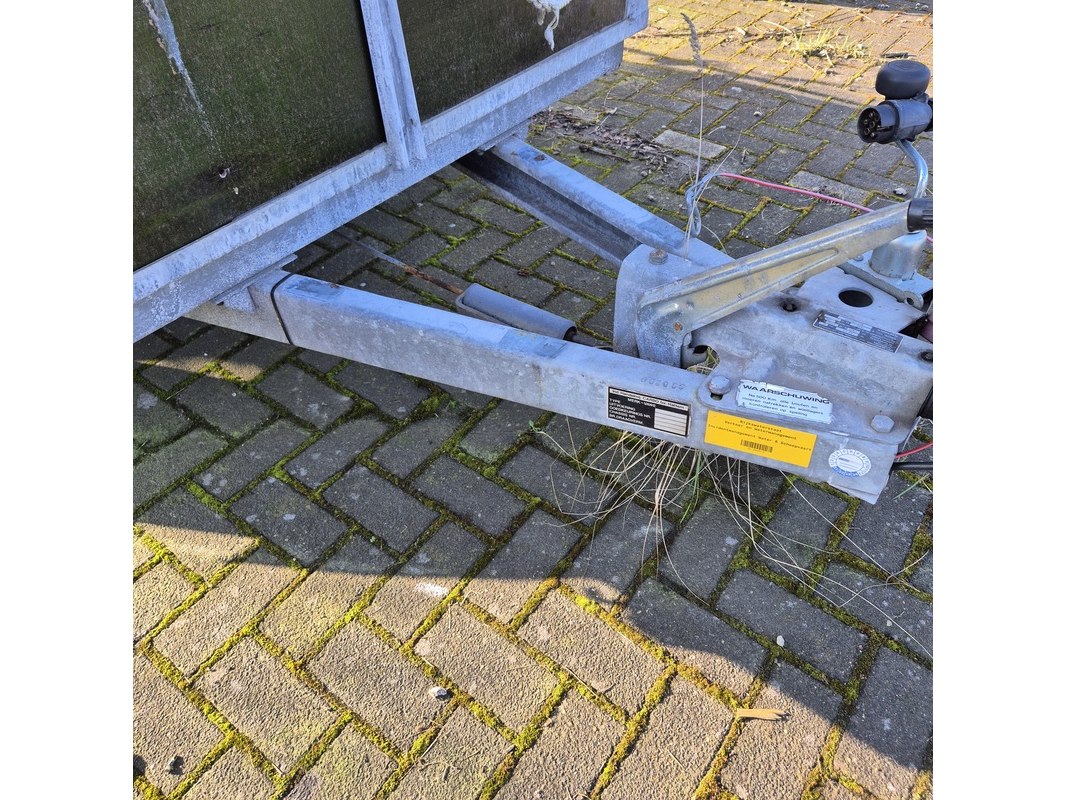 Merk: Vawe Product: Aanhangwagen met olieschermen. Afmeting: LxB ca. 415 x 182 cm. Conditie: gebruikt Specificaties: Kenteken: 54-WT-51 VIN nummer: onbekend Eerste toelating nationaal: 16-08-1988 Massa ledig voertuig: 340 kg Laadvermogen: 1160 kg. Opties e.d. Reservewiel Waargenomen gebreken: Gebruikssporen rondom Deuken in spatbord Technische staat en werking onbekend. De aangegeven lengte is de afstand van hart koppeling tot achterzijde van de aanhanger.
