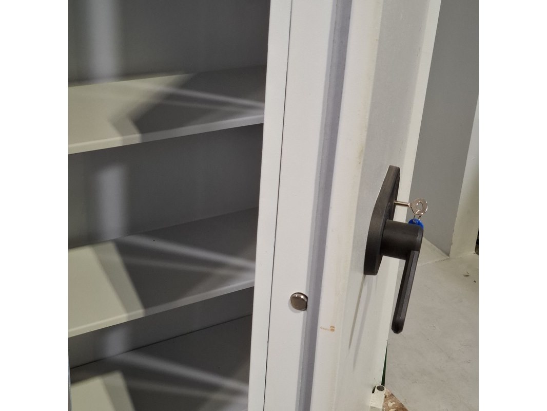 Product: Brandwerende kast Afmeting: HxBxD ca. 151x70x47 cm BouwJaar: 2003 Conditie: Gebruikt Specificaties: Massa: 395 kg Inclusief sleutel. Diverse beschadigingen. Exclusief pallet.