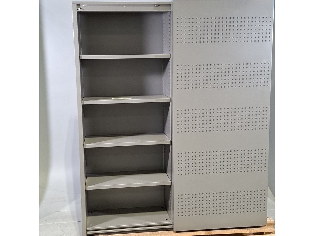 Product: Schuifdeurkast Afmeting: HxBxD ca. 191x160x45 cm Conditie: Gebruikt Specificaties: Bevat diverse beschadigingen. Exclusief pallet.