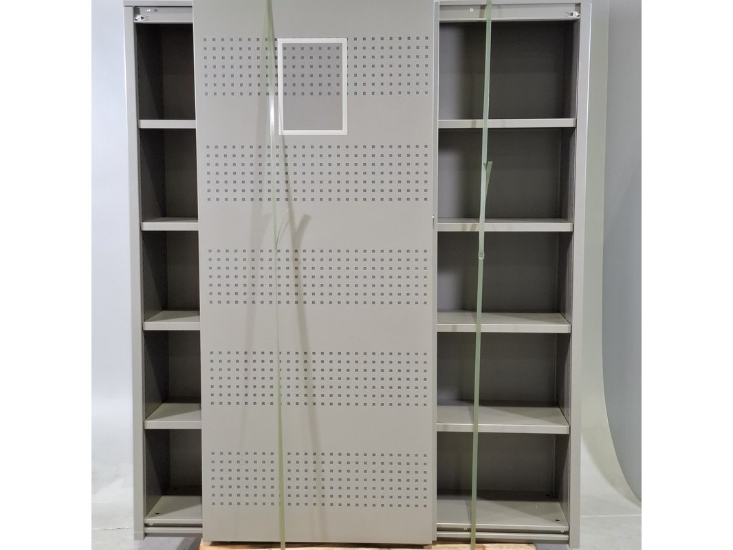Product: Schijfdeurkast Afmeting: HxBxD ca. 191x160x46 cm Conditie: Gebruikt Specificaties: Bevat diverse beschadigingen Exclusief pallets