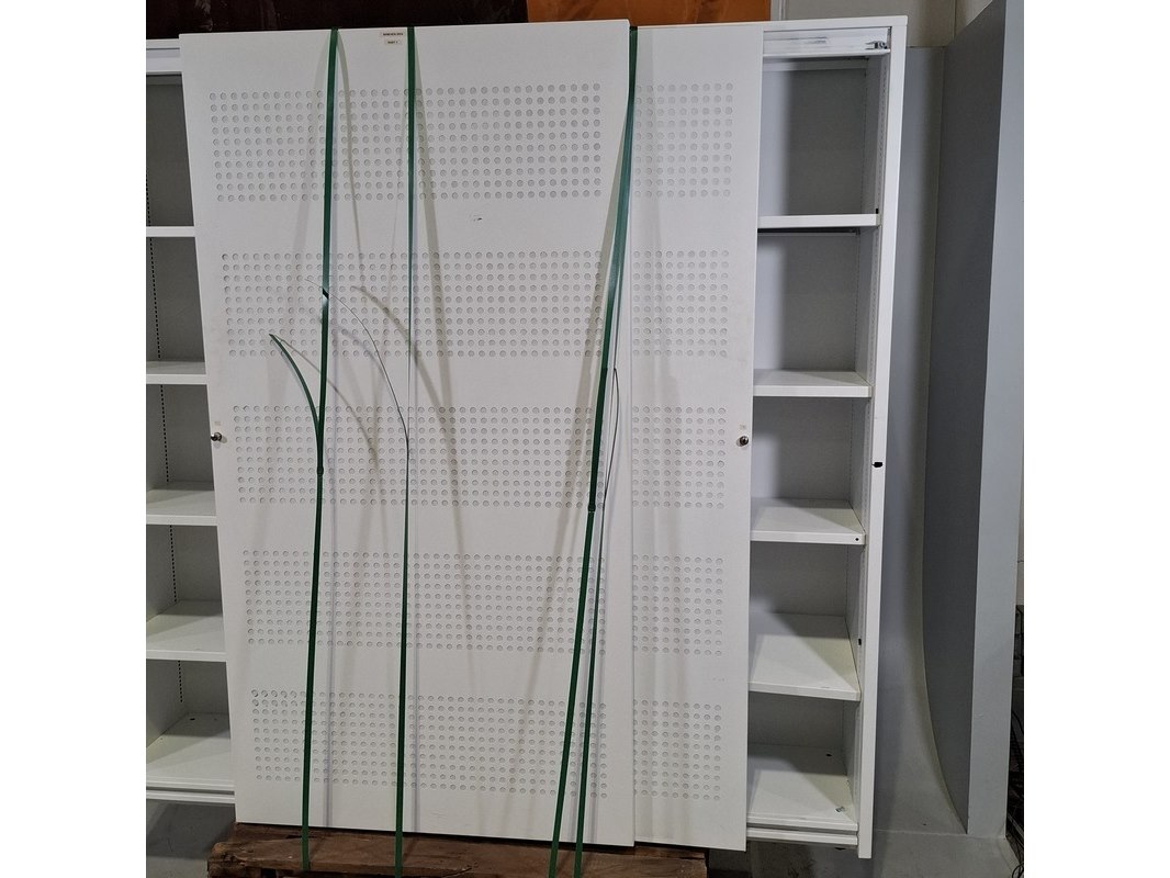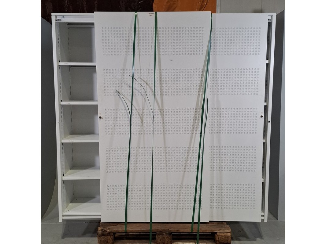 Product: Schuifdeurkast Afmeting: HxBxD ca. 195x200x46 cm Conditie: Gebruikt Specificaties: Bevat diverse beschadigingen. Exclusief pallets.