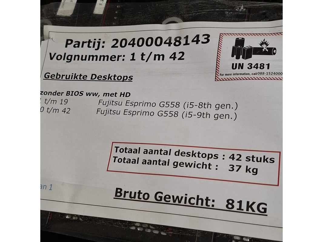 Merk: Fujitsu Product: Desktop Conditie: gebruikt Specificaties: Grade B Zonder Bios WW, met HD