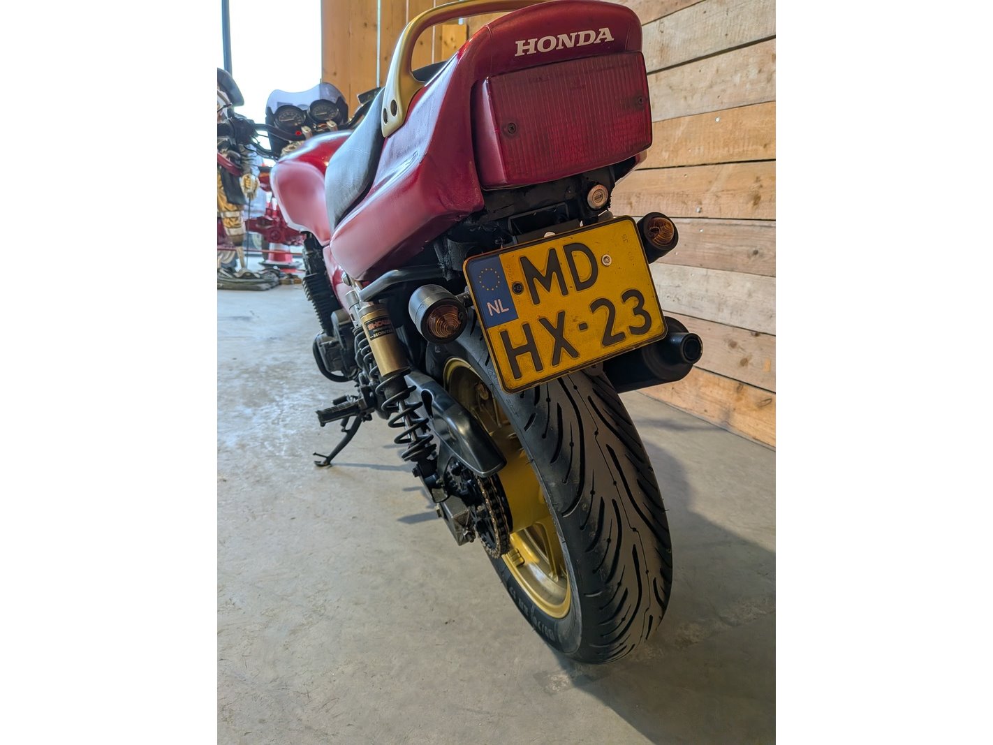 Merk: Honda Product: Motor BouwJaar: 1993 Conditie: Gebruikt Specificaties: Basis kenmerken Kenteken: MD-HX-23 Chassisnummer (VIN): RC42-2008905 Datum eerste toelating: 23 maart 1993 Afgelezen tellerstand: 16.684 km Aantal sleutels: 1 Start: Ja Motor, Prestaties & Milieu Aantal cilinders: 4 Cilinderinhoud: 747 cc Max. vermogen: 54 kW / 73 pk Gewicht: 235 kg Waargenomen mankementen Gebruikerssporen Rechter spiegel ontbreekt Beschadigingen op de tank Moet op gang gebracht worden Motor tikt bij lage toeren stationair draaiend Verdere technische staat en werking onbekend Video https://youtu.be/L5y5qNWv_f8