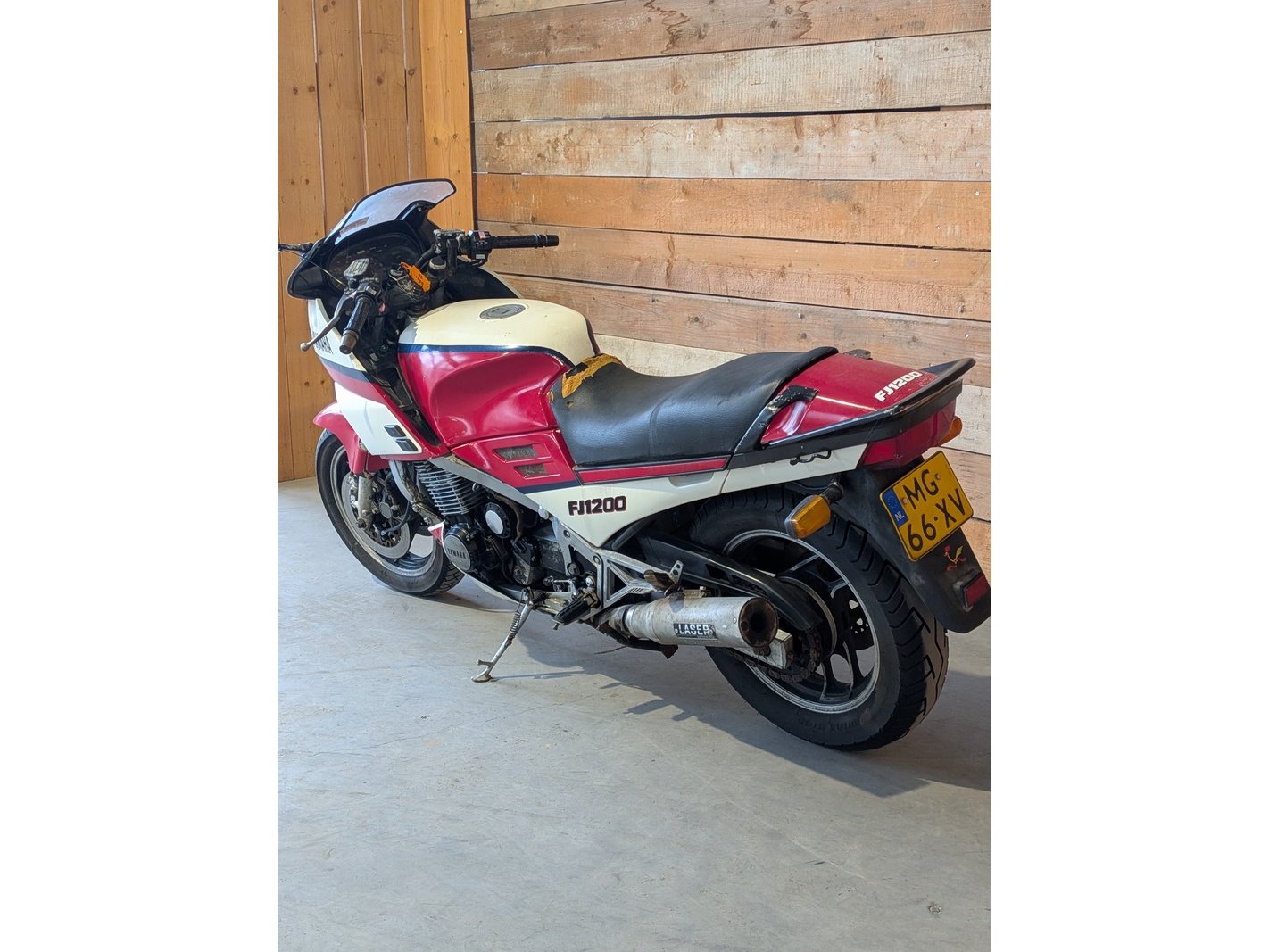Merk: Yamaha Product: Motor BouwJaar: 1986 Conditie: Gebruikt Specificaties: Basis kenmerken Kenteken: MG-66-XV Chassisnummer (VIN): 1TX001699 Datum eerste toelating: 06-06-1986 Afgelezen tellerstand: 77033 KM Aantal sleutels: 1 Start: Nee, accu leeg. Motor, Prestaties & Milieu Aantal cilinders: 4 Cilinderinhoud: 1.188 cm³ Max. vermogen: 92 kW (125 PK) Gewicht: 259 kg Waargenomen mankementen Gebruikerssporen rondom Plekjes rondom Rechterspiegel ontbreekt Beschadiging zitkussen Verdere technische staat en werking onbekend