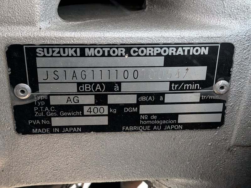 Merk: Suzuki Product: Motor BouwJaar: 1997 Conditie: Gebruikt Specificaties: Basis kenmerken Kenteken: MX-47-VR Chassisnummer (VIN): JS1AG111100100547 Datum eerste toelating: 28-03-1997 Afgelezen tellerstand: 81.984 KM Aantal sleutels: 1 Start: Nee, accu leeg. Motor, Prestaties & Milieu Aantal cilinders: 2 Cilinderinhoud: 996 cm³ Max. vermogen: 92 kW (125 PK) Waargenomen mankementen Gebruikerssporen Roestplekjes Verdere technische staat en werking onbekend