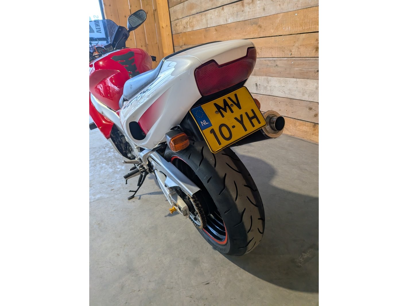 Merk: Yamaha Product: Motor BouwJaar: 1996 Conditie: Gebruikt Specificaties: Basis kenmerken Kenteken: MV-10-YH Chassisnummer (VIN): JYA4SV00000003036 Datum eerste toelating: 06-04-1996 Afgelezen tellerstand: 43.103 KM Aantal sleutels: 1 Start: Startmotor draait rond, start niet. Volgens opgave loopt de motor. Motor, Prestaties & Milieu Aantal cilinders: 4 Cilinderinhoud: 1002 cm³ Max. vermogen: 107 kW (145 PK) Gewicht: 225 kg Waargenomen mankementen Gebruikerssporen Verdere technische staat en werking onbekend