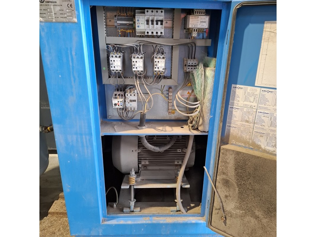 Merk: Ekomak en OKS Product: Compressor met drukvat Conditie: Gebruikt Specificaties: Compressor Type: EKO 18 Pressure: 10 Bar Capacity: 3.1 m3/min Motor: 16,5 kW Serienummer: 18413 Bouwjaar: 2008 Drukvat Serienummer: 530107 Capacity: 250L Werkdruk: 11 Bar Bouwjaar: 2006
