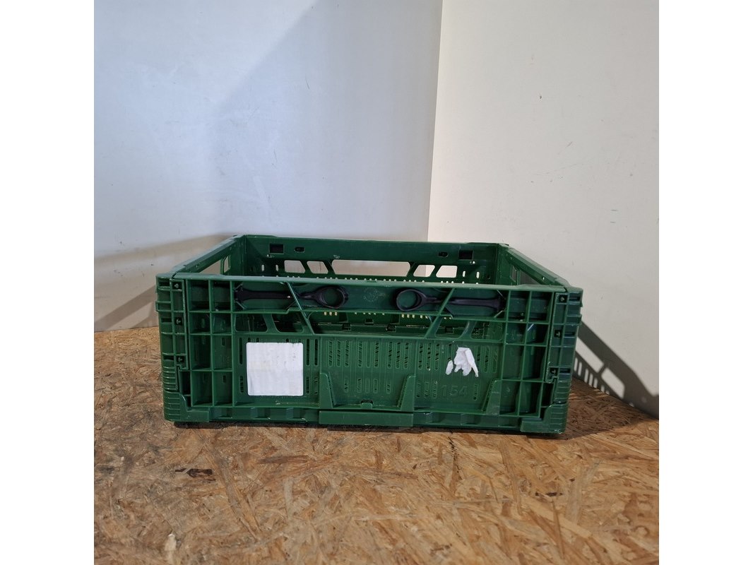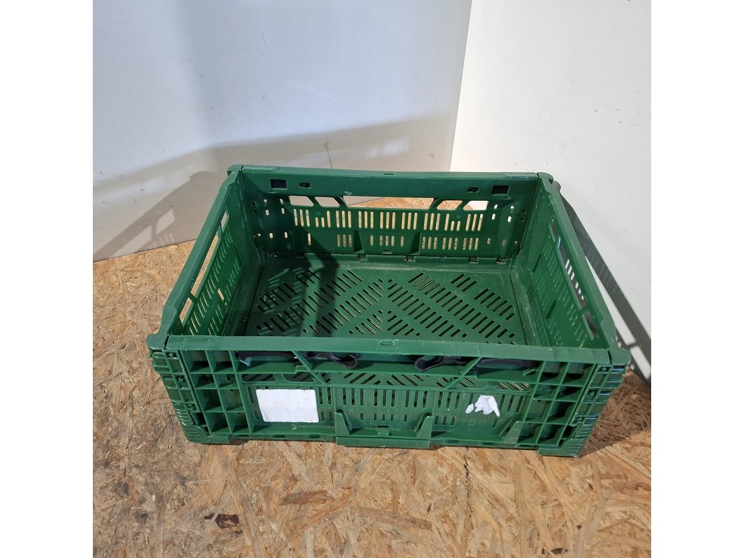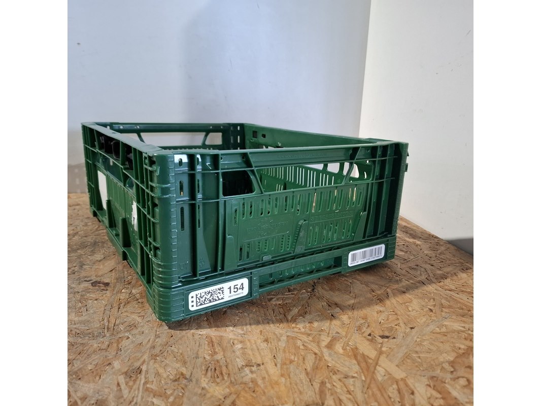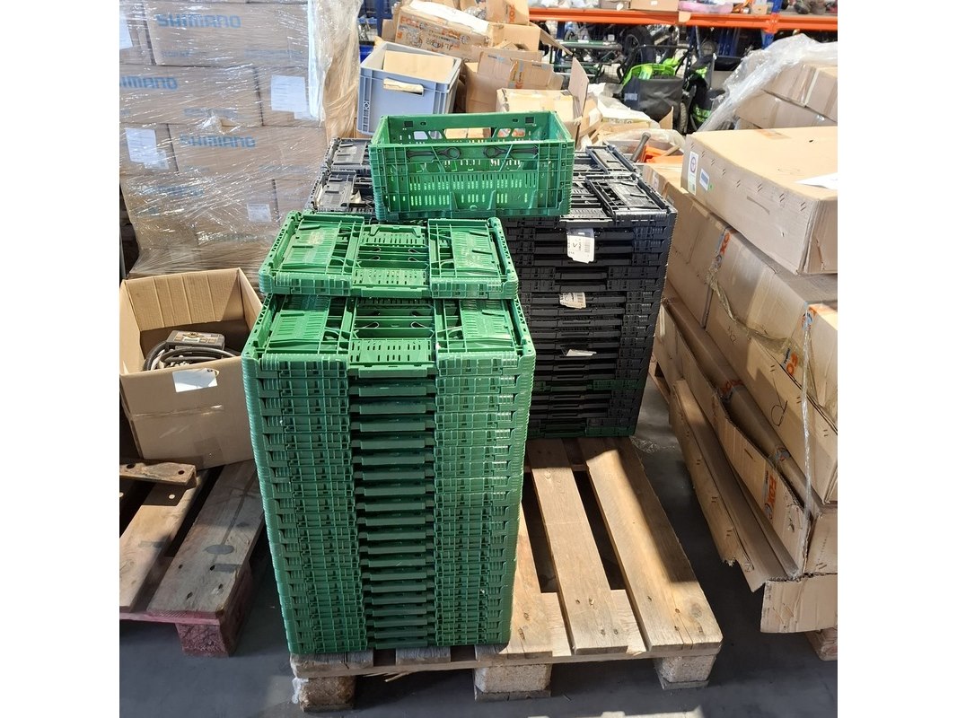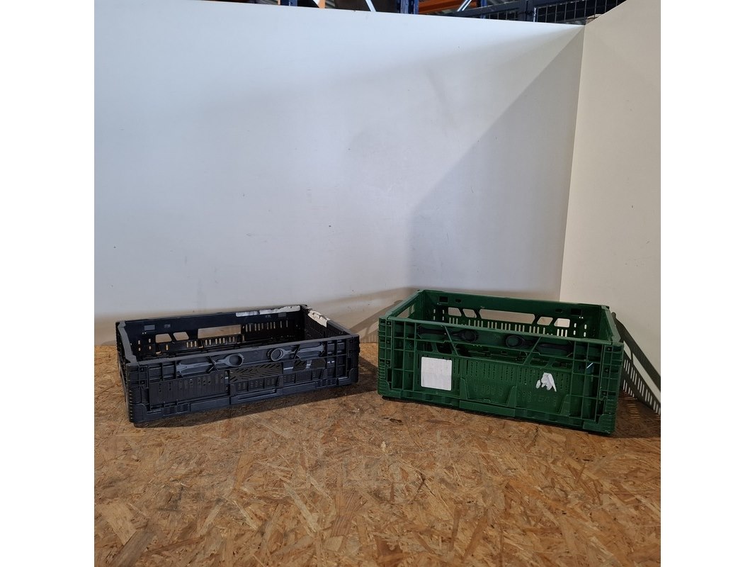 Product: Vouwkrat Conditie: Gebruikt Specificaties: Bestaande uit: - 80x zwart lxbxh ca. 39x29,5x10 cm - 42x groen lxbxh ca. 39,5x29,5x14,5 cm - stapelbaar
