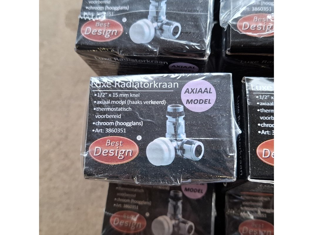 Merk: Best Design Product: Radiatorkraan Kleur: Glans chroom Specificaties: ½" x15mm knel, axiaal model(haaks verkeerd), thermostatisch voorbereid, art.nr. 3860351
