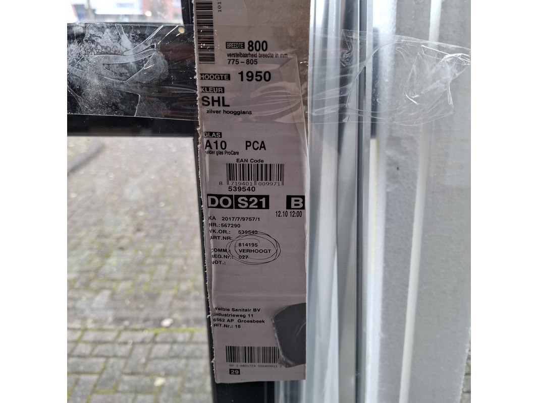 Merk: Sealskin Product: Douchedeur Materiaal: helder veiligheidsglas Afmeting: 195x80cm Specificaties: Zilver hoogglans profiel, EAN 8719401009971