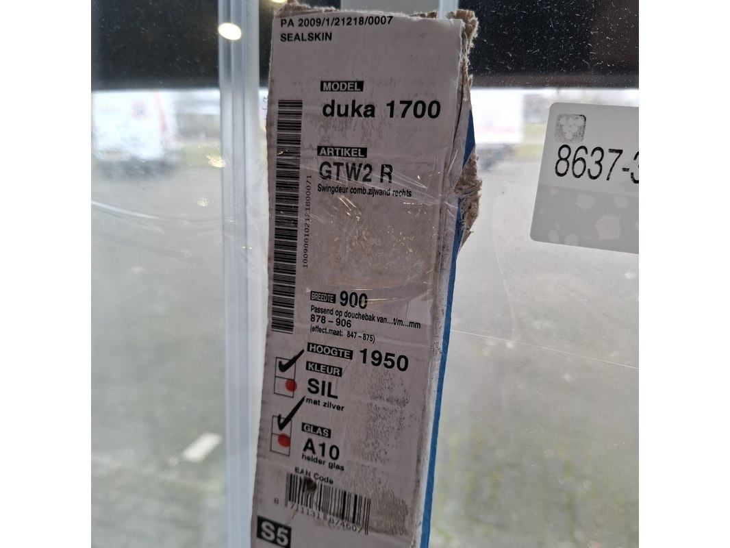 Merk: Sealskin Product: Douchedeur Materiaal: helder veiligheidsglas Afmeting: 195x90cm Specificaties: Mat zilver profiel