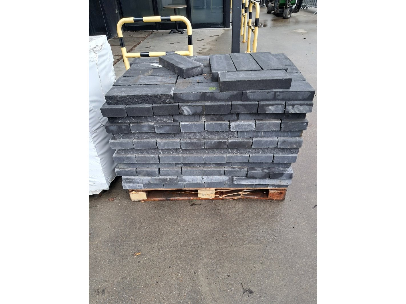 Product: Pallet stenen Kleur: Antraciet Afmeting: 15cm x 40cm x 6cm Conditie: Nieuw Specificaties: Bestaande uit: 1x pallet 192 stuks, 1x pallet 191 stuks