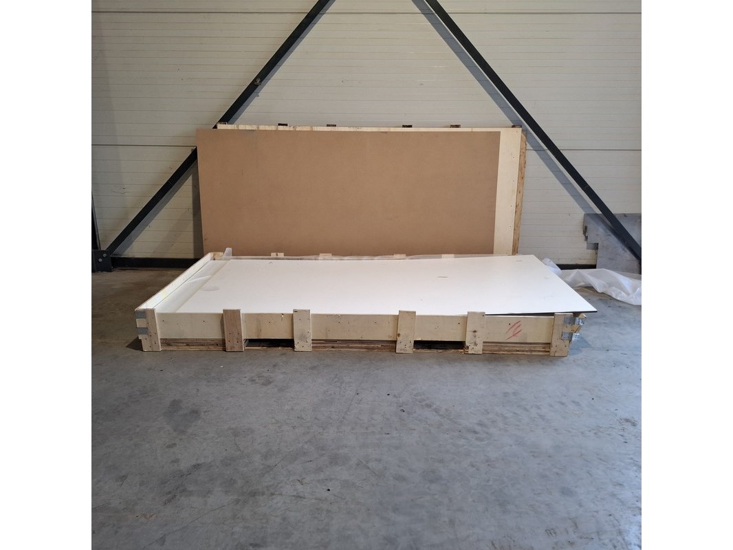 Product: HDPL plaat Kleur: Licht grijs Afmeting: lxb ca. 244x122cm Conditie: Nieuw Specificaties: Dikte ca. 12mm
