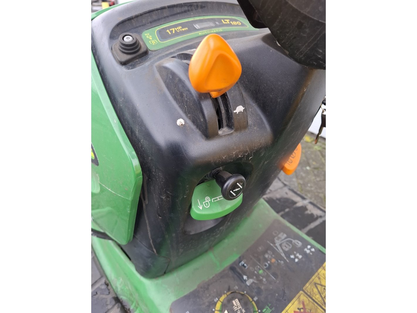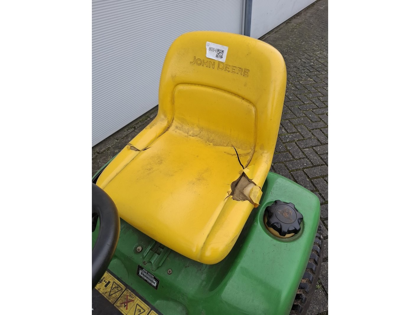 Merk: John Deere Product: Zitmaaier Conditie: Gebruikt Specificaties: Afgelezen tellerstand: 555H Voorzien van: - Hydrostatische aandrijving - 17pk benzinemotor