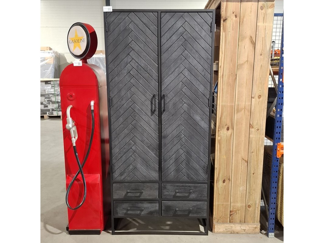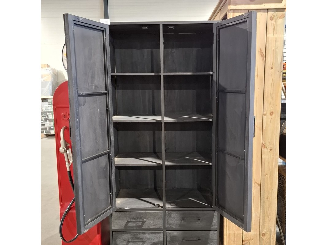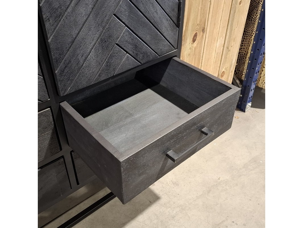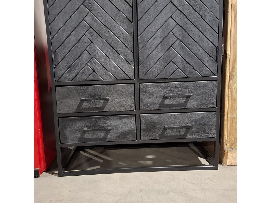 Merk: Starfurn Product: Wandkast Kleur: Zwart Materiaal: Mango hout Afmeting: 200x90x45 cm BouwJaar: 2024 Conditie: Nieuw Specificaties: Kabinet kast ‘New York’ is gemaakt van massief mangohout. De kabinet kast heeft twee deuren en vier lades. Achter de twee lange deuren vind je nog drie extra legplanken. Het massieve mangohout is gezandstraald en behandeld met een zwarte lak. Het hout is ingelegd in een visgraatpatroon. Het zwart metalen frame en de metalen handgrepen zijn afgewerkt met een zwarte lak. Afmetingen Breedte: 90 cm Diepte: 45 cm Hoogte: 200 cm