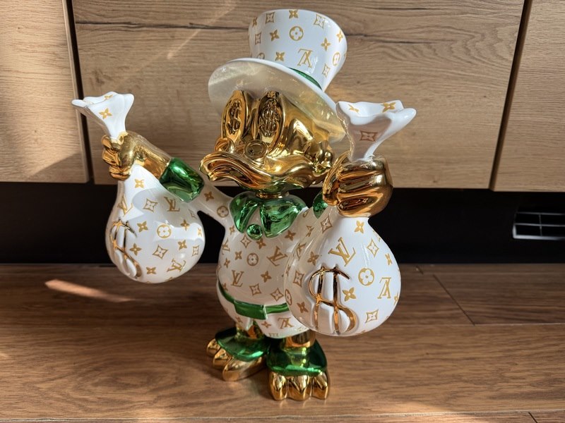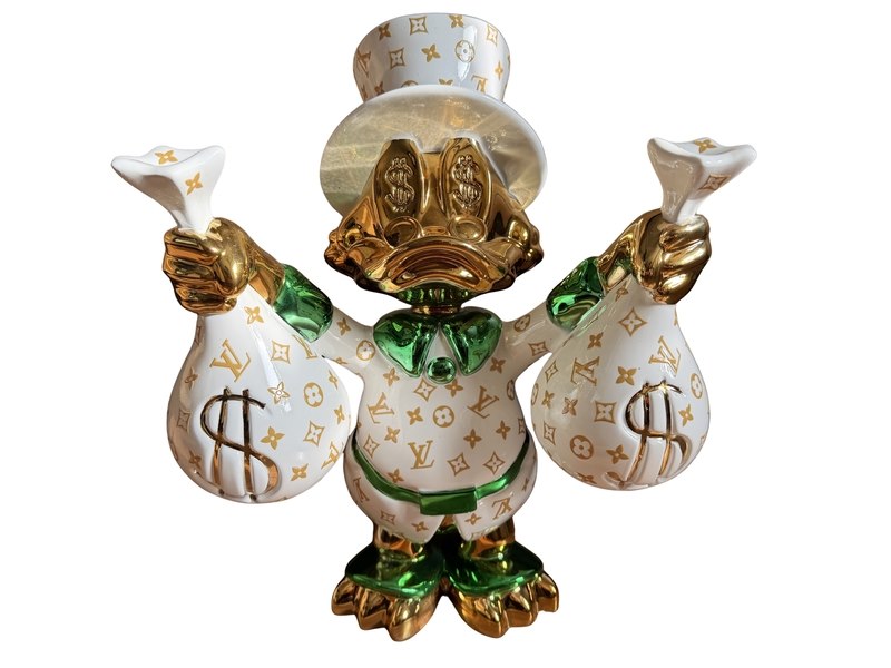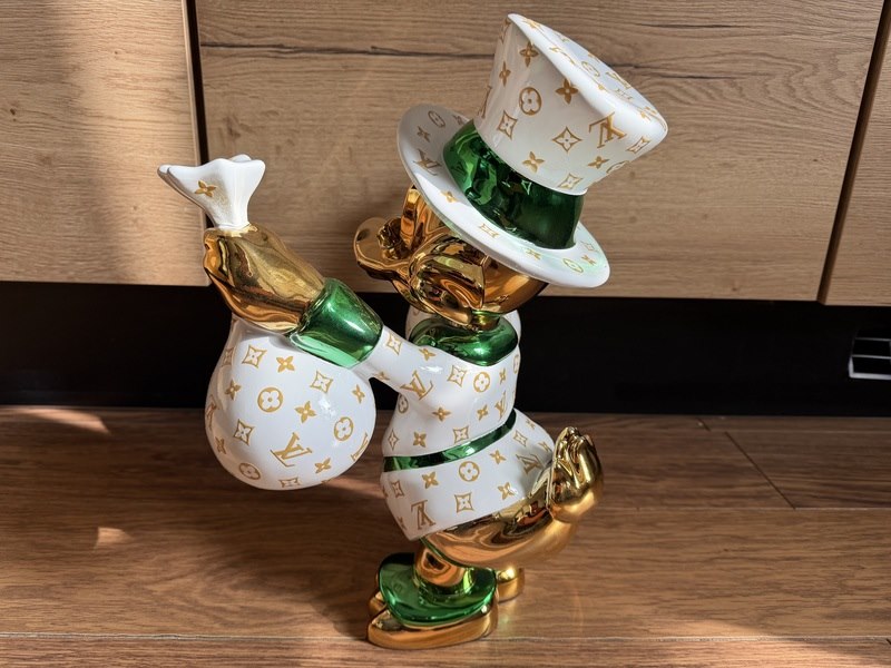 Merk: Lior24 Product: Dagobert Duck beeld Materiaal: Resin Afmeting: 42x35 Conditie: Nieuw Specificaties: Dagobert Duck beeld met Louis Vuitton print