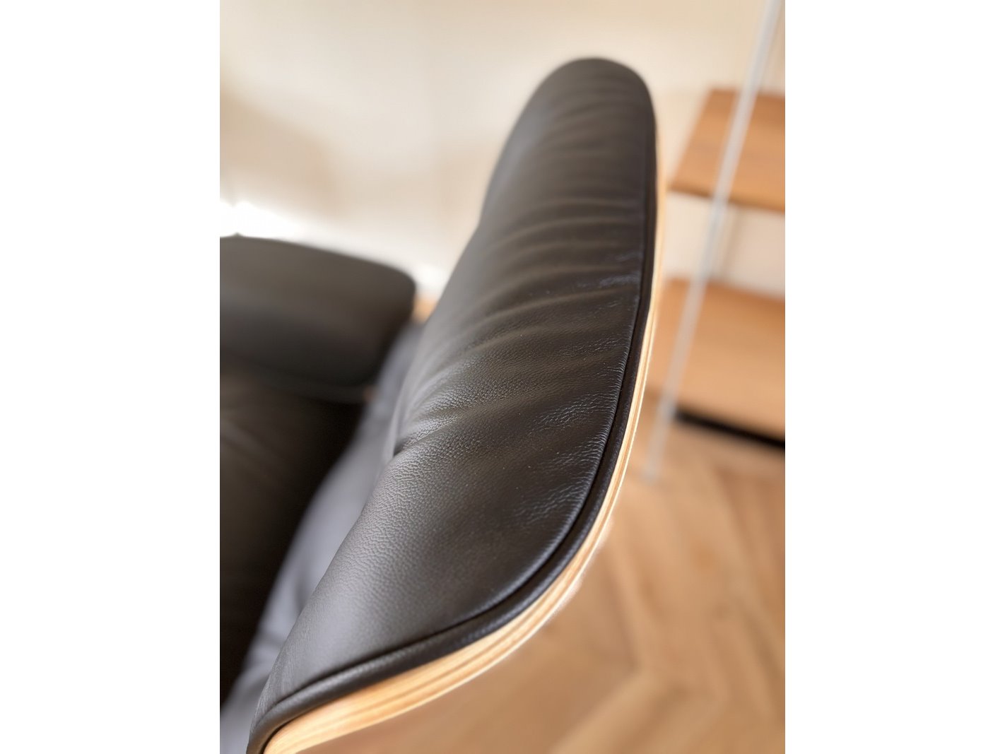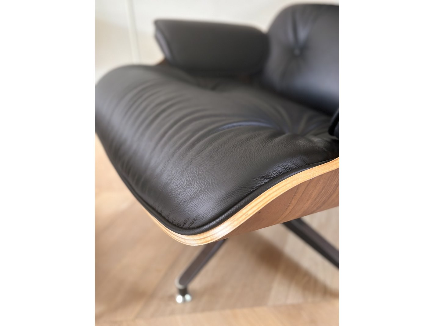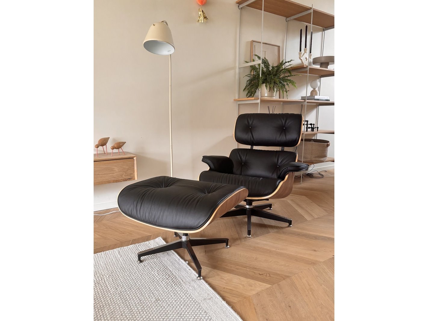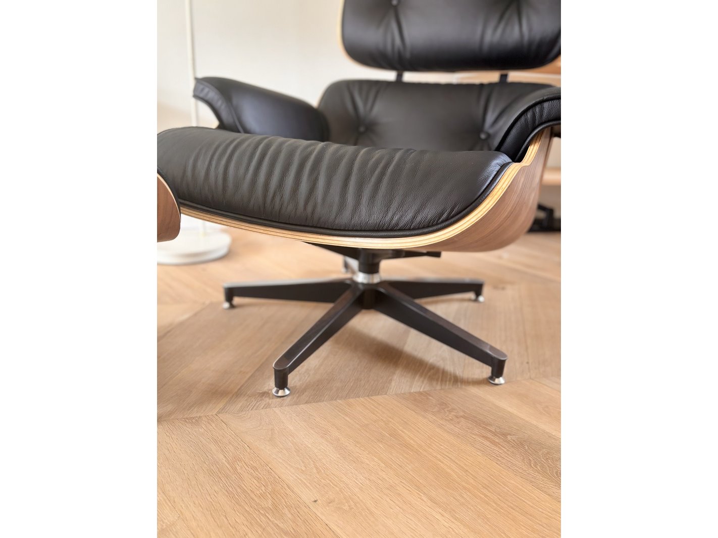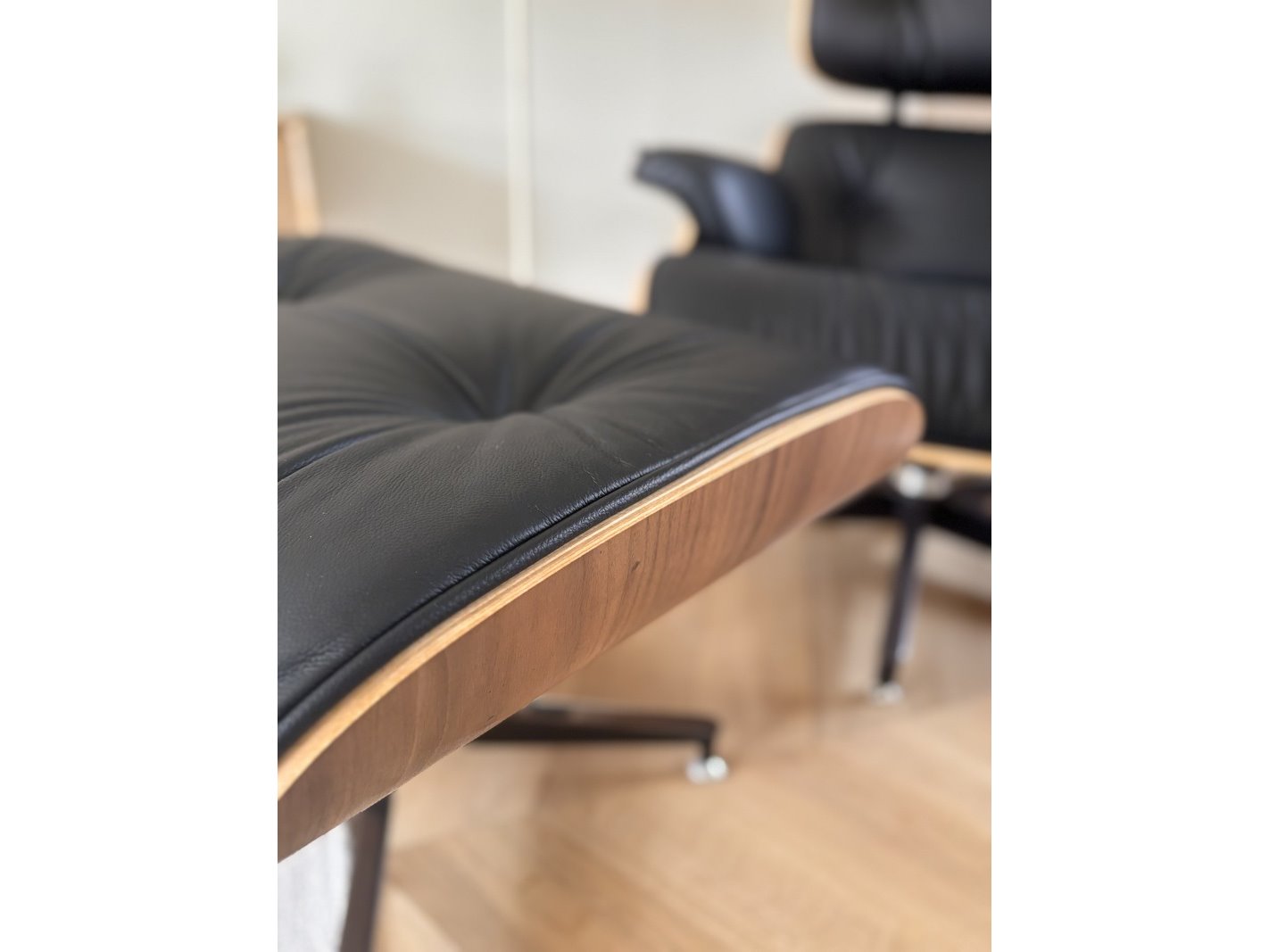 Eames lounge chair met ottoman in walnoot en echt zwart leer replica, walnoot / zwart
