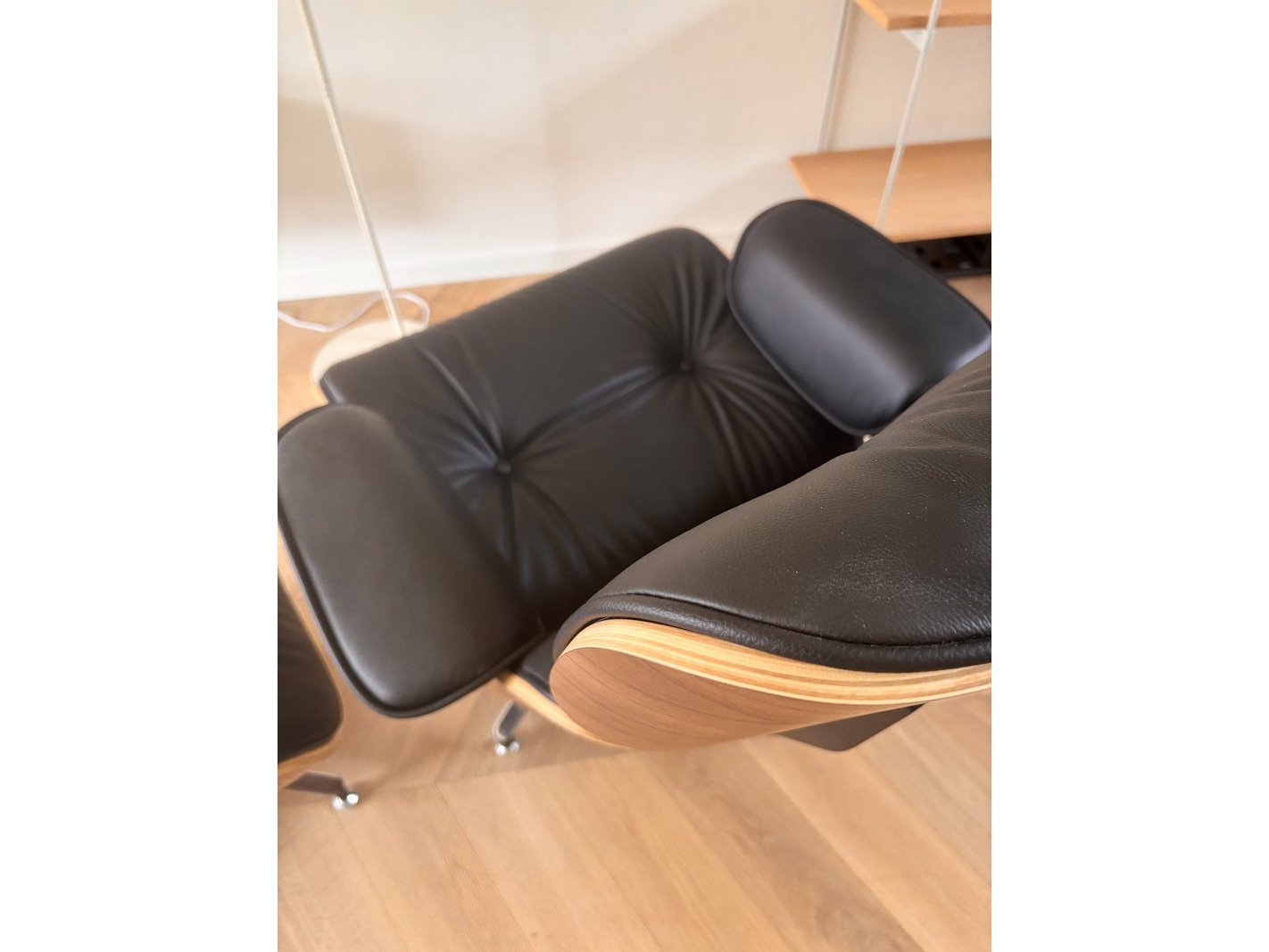 Merk: Replica Product: Eames lounge chair met Ottoman in walnoot en echt zwart leer Kleur: Walnoot / Zwart Materiaal: Runderleer / Hout Afmeting: Lounge Chair: B84xH84xD76cm (zithoogte 40cm), Ottoman: B64xH42xD54 cm Conditie: Nieuw Specificaties: Nieuw. Prachtige Eames lounge Chair. Bekleed met echt runderleer. Het betreft een replica.