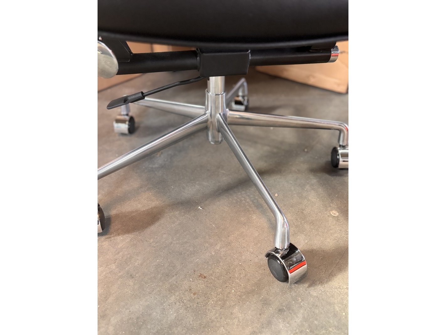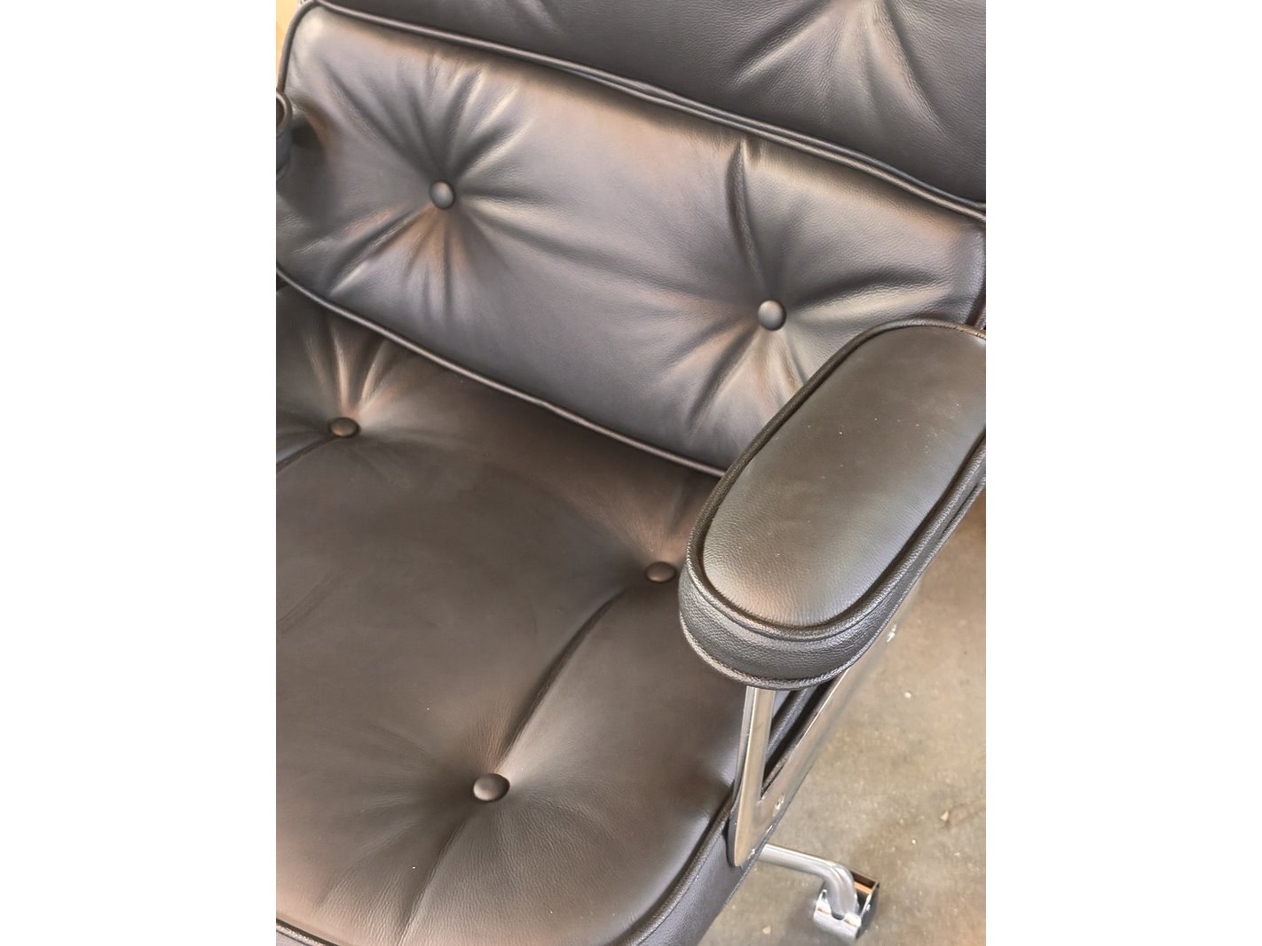Eames es104 bureaustoel in zwart leer, zwart / chroom
