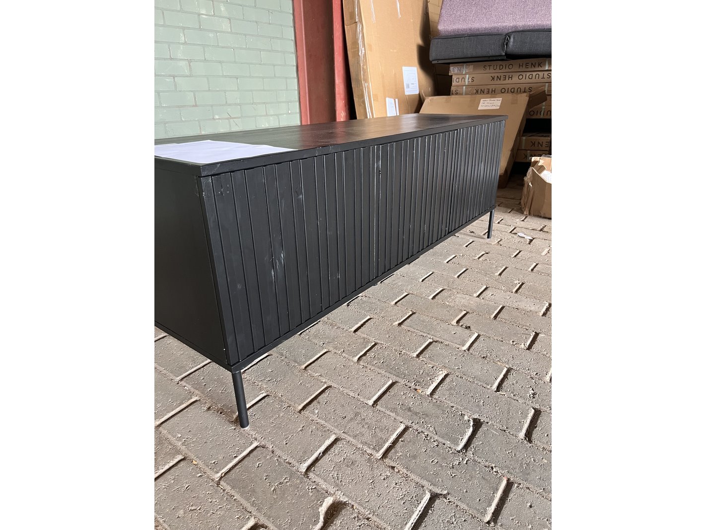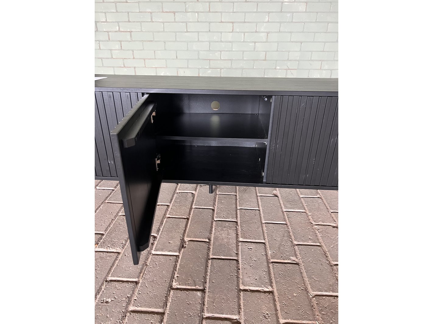 Merk: WOOOD Product: Tv-meubel Kleur: Zwart Materiaal: Grenen Afmeting: B 150 cm Conditie: Nieuw Specificaties: De perfecte plek om allemaal spullen in op te ruimen is het Gravure tv-meubel van WOOOD. Hij is namelijk niet alleen heel handig; hij is ook nog eens super mooi. Dankzij de lijnen ontstaat er een speelse, maar rustige look. Kijken en genieten dus! - Modern tv-meubel van H 56 x B 150 x D 44 cm - Gemaakt van grenenhout met een diepzwarte beits - Het onderstel is gemaakt van metaal - De binnenkant van de kast is van spaanplaat - Achter de 3 deuren zit een lade en 3 legplanken Dit betreft een retour gestuurd artikel.