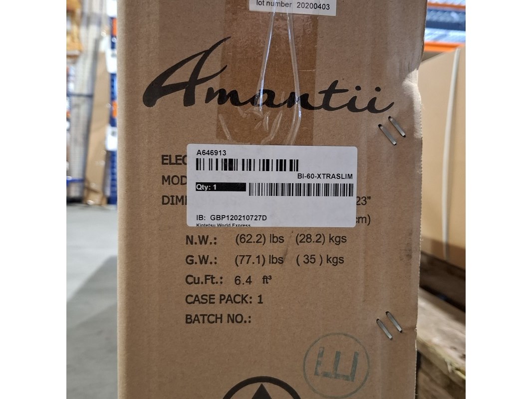 Merk: Amantii Product: Elektrische sfeerhaard Kleur: Zwart Materiaal: Metal Afmeting: Appliance Width 59 1/8” or 150.3 cm Appliance Height 19 7/8” or 50.4 cm Appliance Depth 4” or 10.25 cm BouwJaar: 2017 Conditie: Nieuw Specificaties: The Amantii BI EXTRA SLIM is a stylish electric fireplace that makes a stunning addition to any space – indoor or Outdoor. With an opening height of 11-7/8” and available in four sizes, you’ll find an EXTRA SLIM fireplace that is perfect for any space in your home, business, or commercial space. At just 4” in-depth, the BI EXTRA SLIM built-in electric fireplace series is perfectly suited to installations where wall depth is at a premium. The Extra Slim model comes standard with clear decorative media with additional media options available for purchase. The Panorama series by Amantii Electric Fireplaces offers an exceptional full view viewing area, providing an immersive and captivating experience for users. This feature allows you to enjoy the realistic flames and glowing embers from a wider perspective, creating a stunning visual focal point in any room. The true trimless design of the Panorama series sets it apart from other built-in units in the market. With no visible trim or frame, the fireplace seamlessly blends into the surrounding wall, creating a sleek and modern appearance. This trimless feature adds a touch of elegance and sophistication to your living space. The full view viewing area of the Panorama series ensures that every angle of the flames is visible, making it perfect for installation in central areas of a room. Whether you’re enjoying a cozy night in or hosting a gathering, everyone can appreciate the beauty and warmth of the fireplace from different vantage points. State of the art flame presentation: Vibrant, multi-colored state of the art flame presentation – change from Yellow to Orange to Red with just a click of the remote. 2 Stage heater Hardwire ready Thermostat hard-wire ready Very thin – only 4″ in-depth Flame can operate without heat Single remote control for flame & heater included Choose from 11 colors of canopy and ember bed lighting to illuminate decorative media from below and above Full frame viewing – unit allows for choice of finishing material to come right to the glass Optional black steel surround comes in the box. It is up to you if you want to use it or not. Can produce up to 5000 BTU of heat, enough to heat up to 500 sq feet