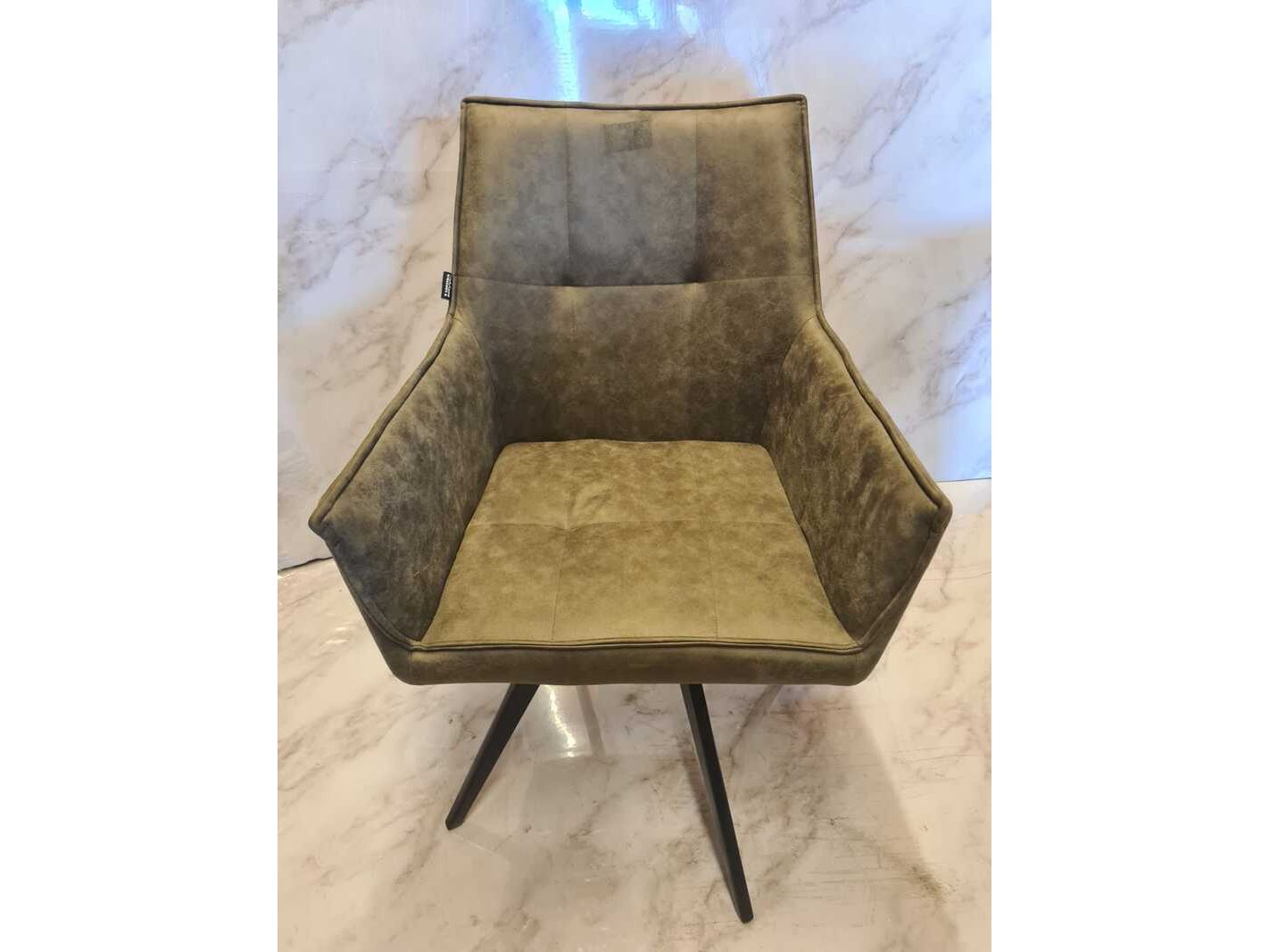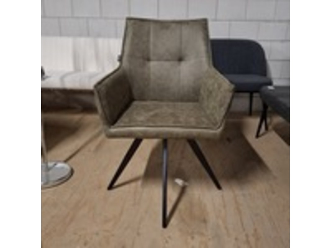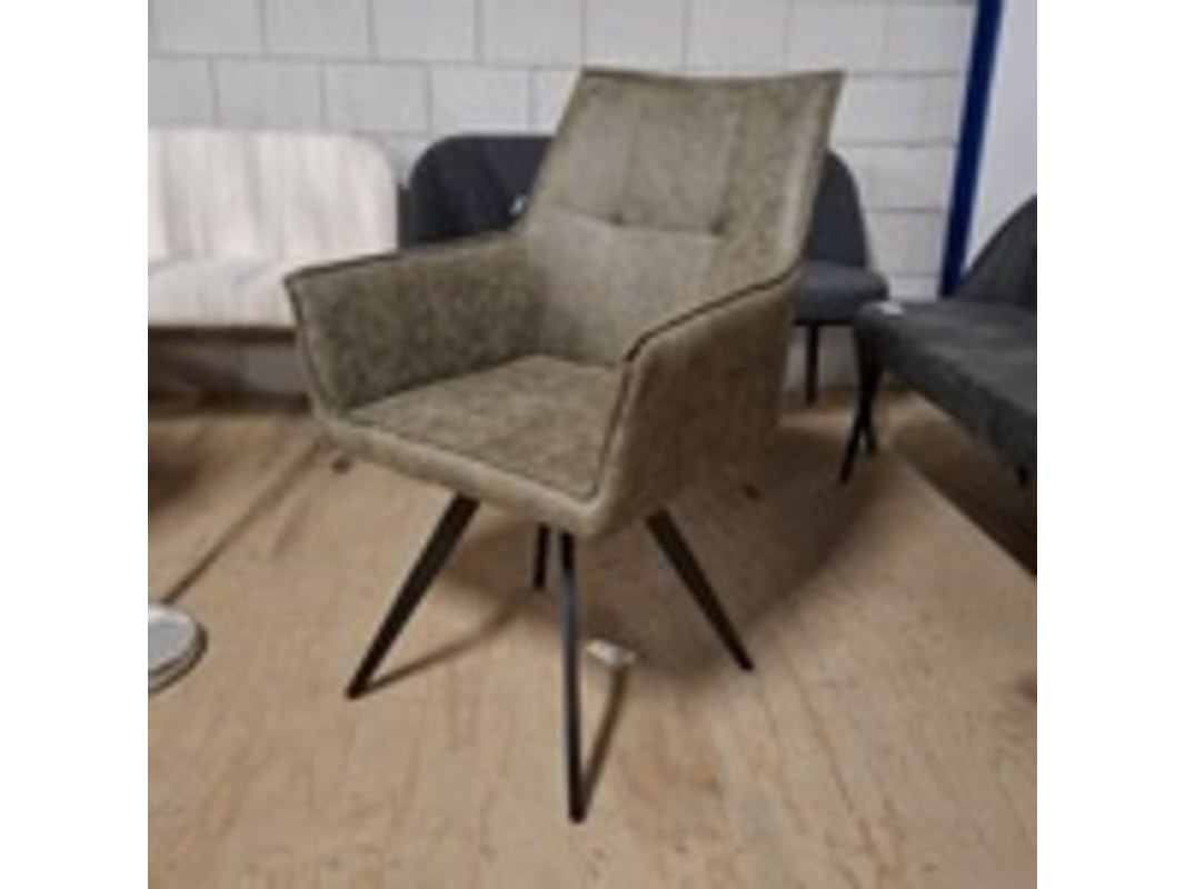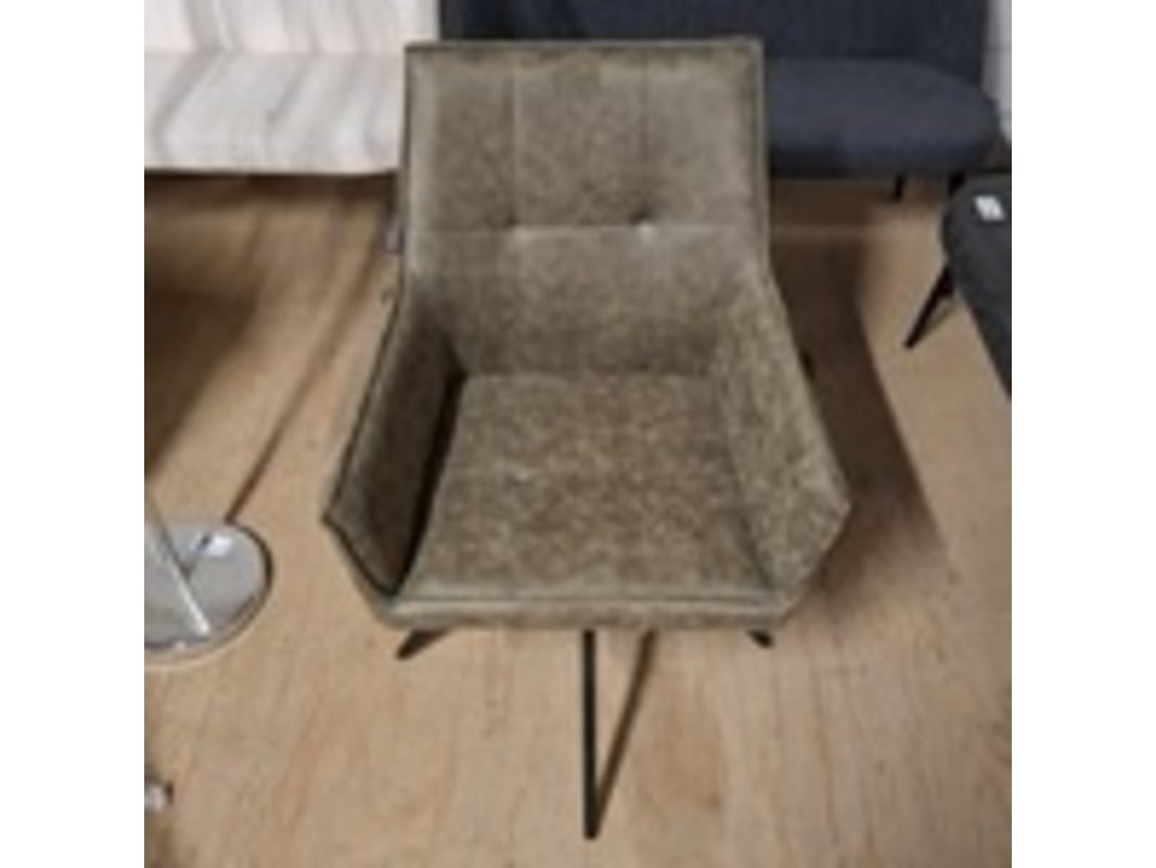 Product: Eetkamerstoel Kleur: Groen Materiaal: Microvezel BouwJaar: 2025 Conditie: Nieuw