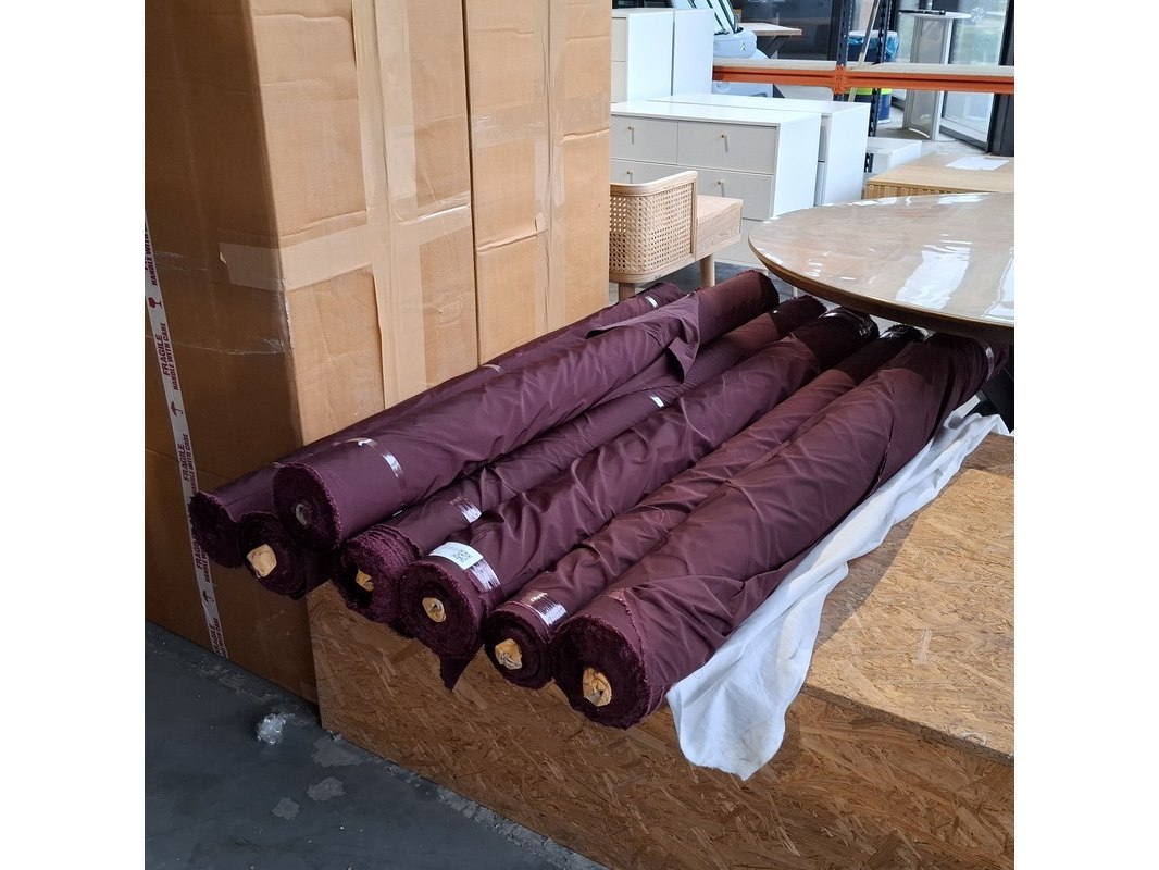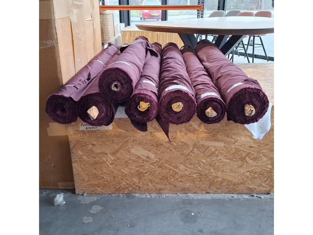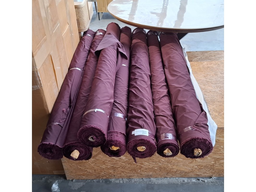 Merk: Lichtdicht Product: Gladde gordijnstof Specificaties: Materiaal: Polyester Kleur: Bordeaurood Breedte: 150cm Totale hoeveelheid: 477 meter