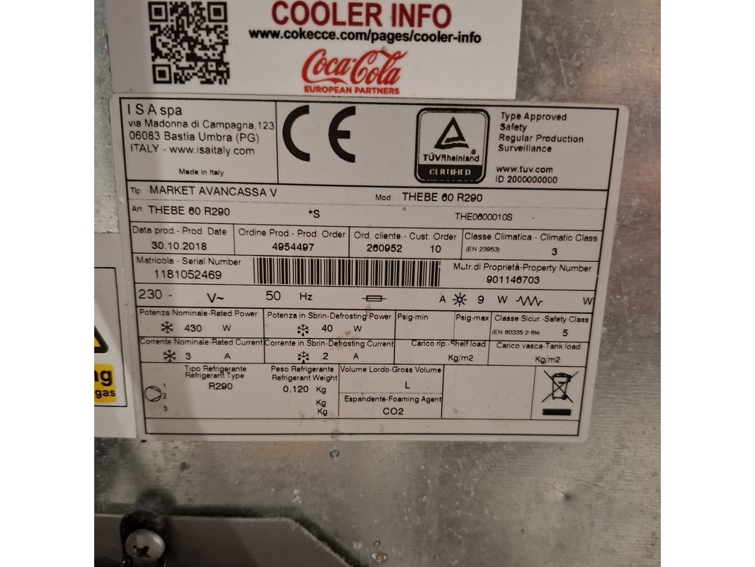 Merk: Isa Product: Gekoelde dranken- of flessendisplay Conditie: Gebruikt Specificaties: Serienummer: 1181052469 Voltage: 230V Wattage: 430W