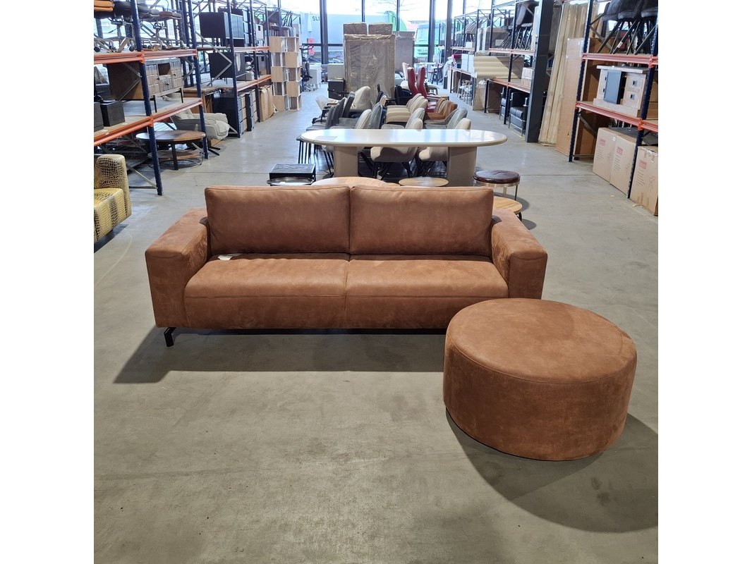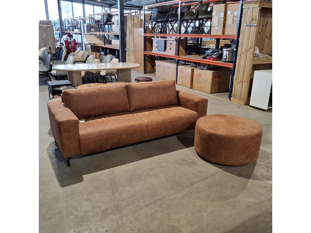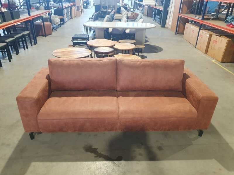 Merk: Starfurn Product: 3-zitsbank Kleur: Cognac Materiaal: Cowboy leer Afmeting: Ongeveer 200 breed BouwJaar: 2024 Conditie: Nieuw Specificaties: Dit betreft een showroom model , de bank heeft een super zitcomfort