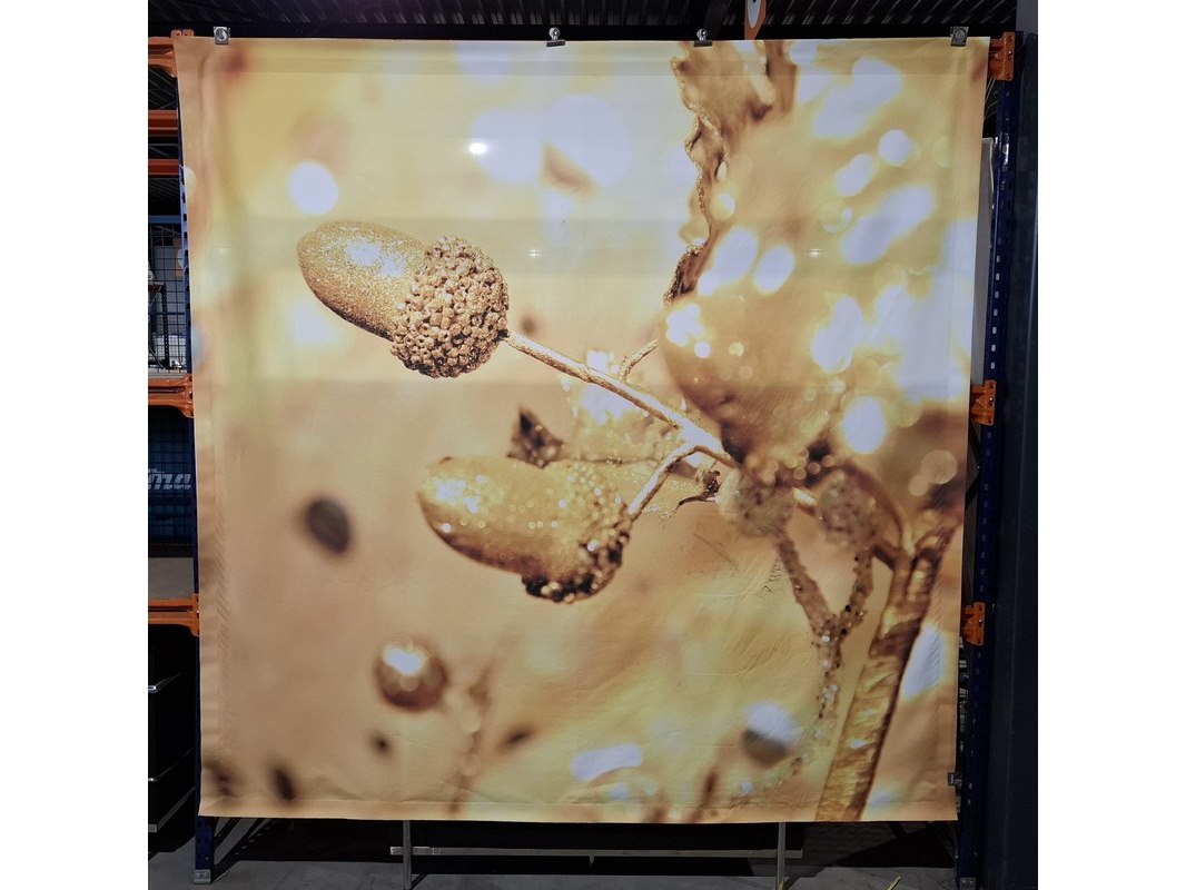 Product: Decoratiepaneel Afmeting: 225 x 225 cm Specificaties: Fullcolour digiprint goudtinten