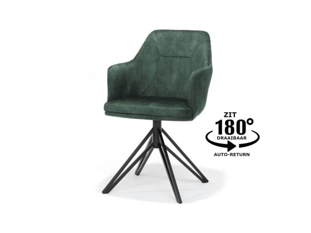 Merk: Benoa Product: Eetkamerstoel Materiaal: Andore BouwJaar: 2024 Conditie: Nieuw Specificaties: 2 x antraciet en 2 x Groen , 4 stoelen totaal Details Armstoel Calvin draaivoet zwart Stof Aurora Hunter Meer informatie Zithoogte 49,50 CM Zitdiepte 45 CM Armhoogte 65 CM Materiaal STOF AURORA VELOURS Stof Samenstelling AURORA 100% POLYESTER (PES) - 330G/m2 Onderstel ZWART METAAL Draaibaar 180 GRADEN - AUTO RETURN