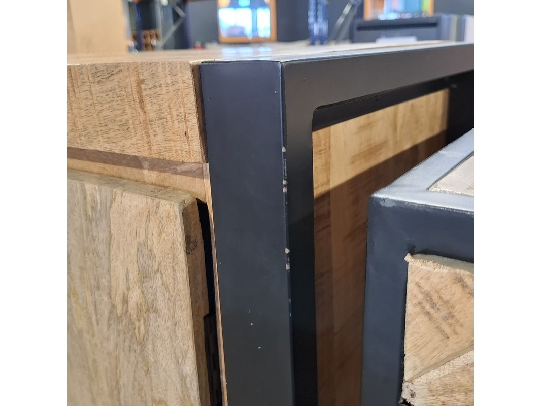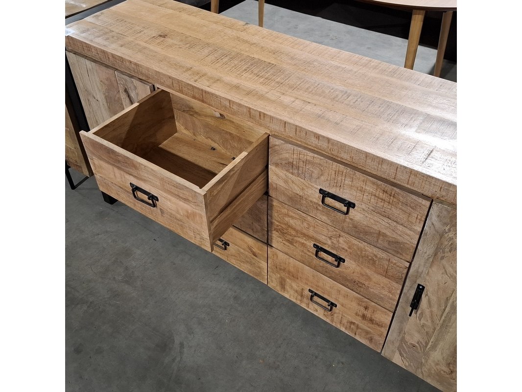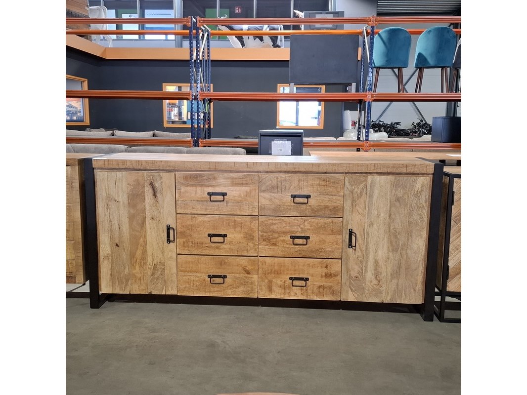 Merk: Carmen Product: Dressoir Materiaal: Mango hout Afmeting: 200x45x80 cm BouwJaar: 2024 Conditie: Gebruikt
