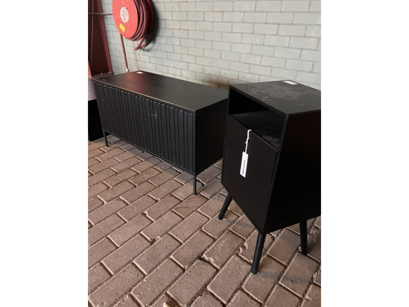 Kistbank, televisiemeubel en nachtkastje, byfonq en woood