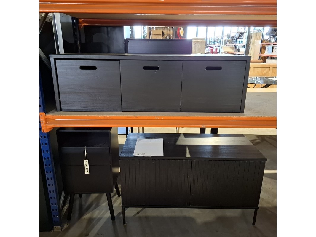 Merk: Byfonq en Woood Product: Kistbank, televisiemeubel en nachtkastje Conditie: Nieuw Specificaties: Leuke items: - byfonq Knix kistbank - Woood gravure tv meubel zwart 100 cm - Woood nachtkastje zwart Betreffen retouren die lichte schade kunnen bevatten.