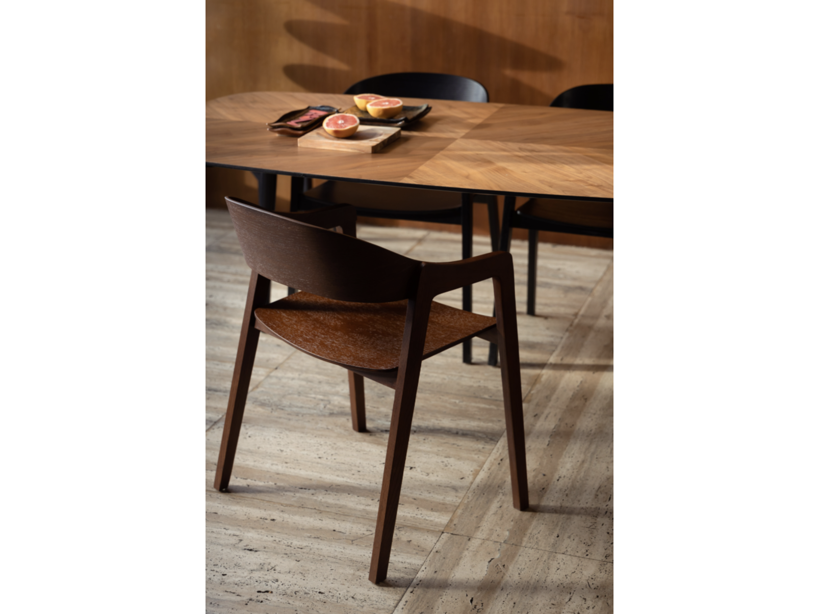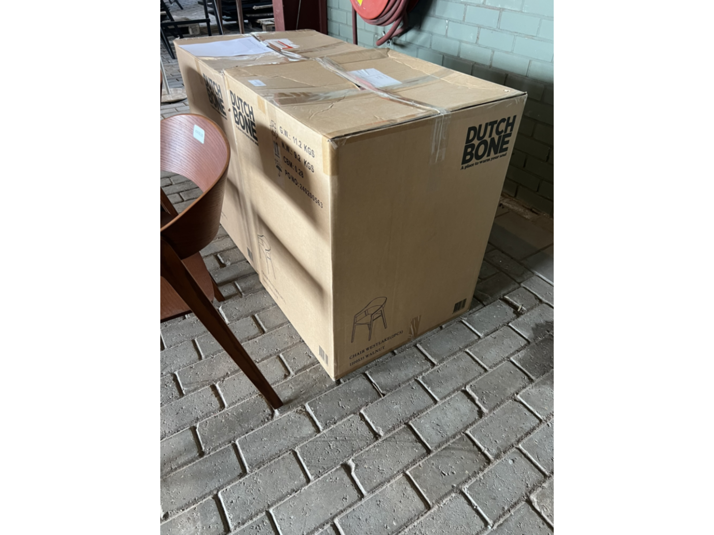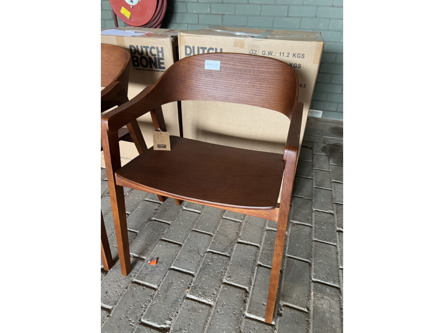Merk: Dutchbone Product: Eetkamerstoel Kleur: Walnoot Conditie: Nieuw Specificaties: Set van 6 stoelen, vier in doos en 2 uit de doos. De stijlvolle Dutchbone Westlake stoelen toveren de eetkamer moeiteloos om in een knusse plek – a place to warm your soul. Deze stoelen zijn namelijk tot stand gekomen door puur vakmanschap. De rugleuning van gebogen hout sluit naadloos aan op de binnenzijde van de armleuningen, die op hun beurt weer overlopen in de poten. In het midden van het frame rust de licht gebogen zitting. Deze is samen met de rugleuning zo gevormd, dat de stoel goed is voor urenlang zitplezier. Perfect om tot in de late uurtjes na te tafelen met geliefden dus! Met deze stoelen creëer je een sfeervolle eetkamer, waarin je heerlijk thuiskomt. Gecontroleerde retouren.