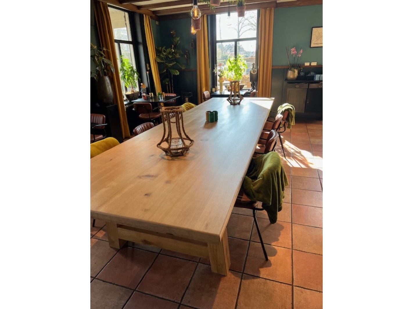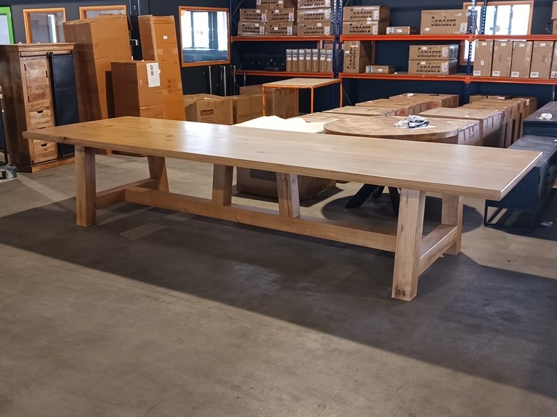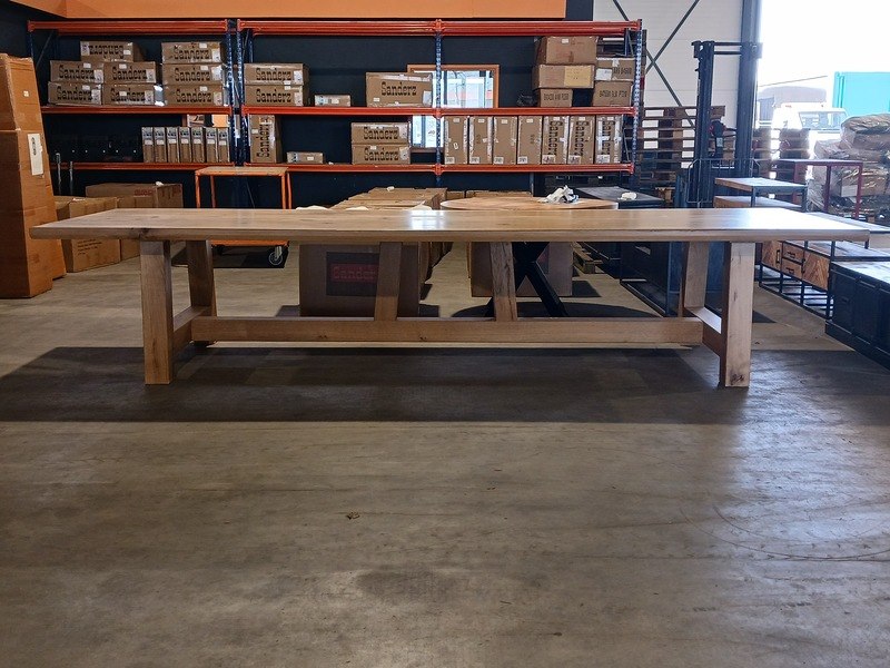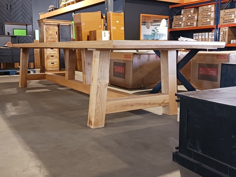 Merk: 450 cm Product: Eettafel | Eiken | Rechthoek | A Poot Materiaal: Eiken hout Afmeting: 450cm lang 78 cm hoog Conditie: Nieuw