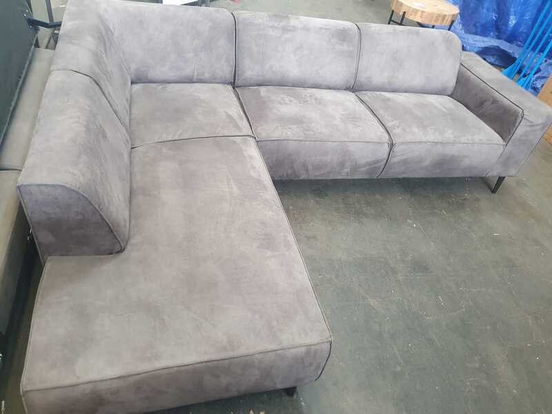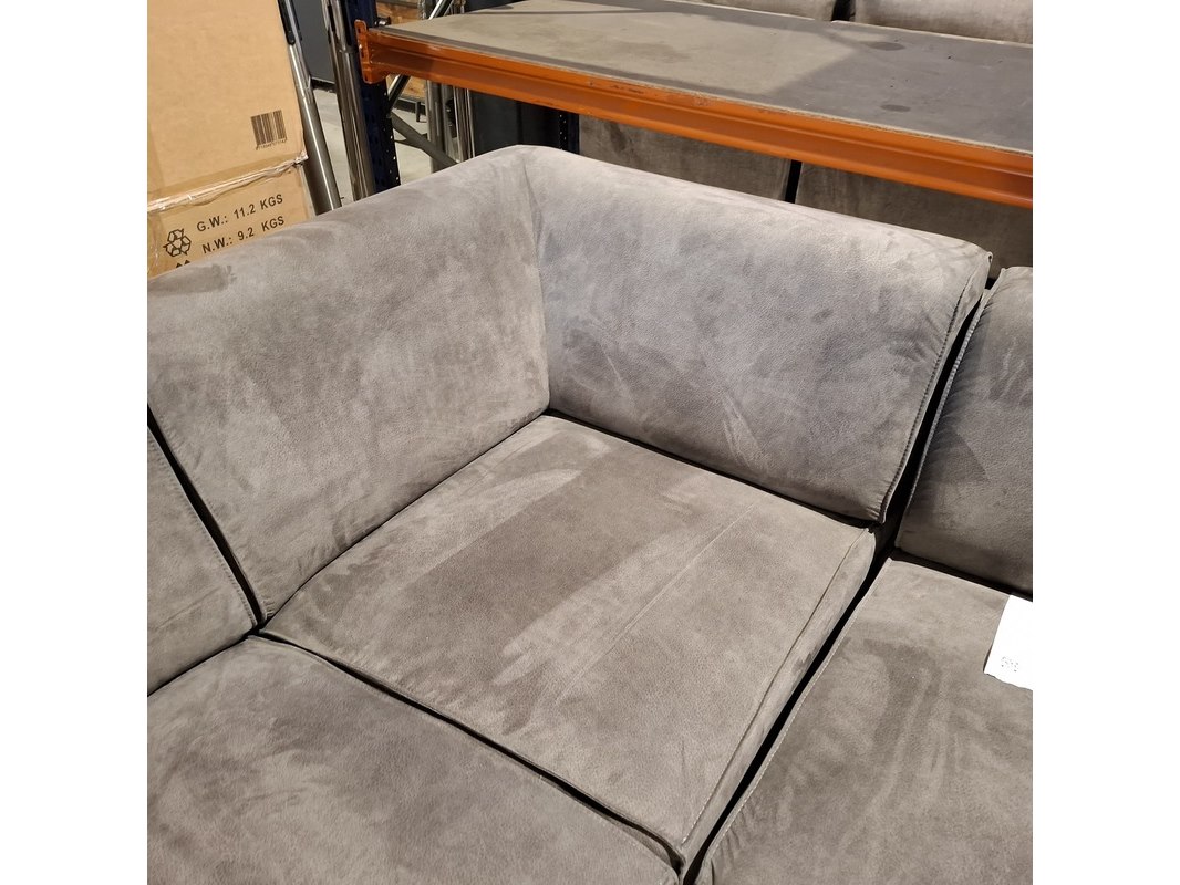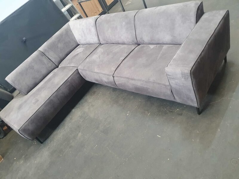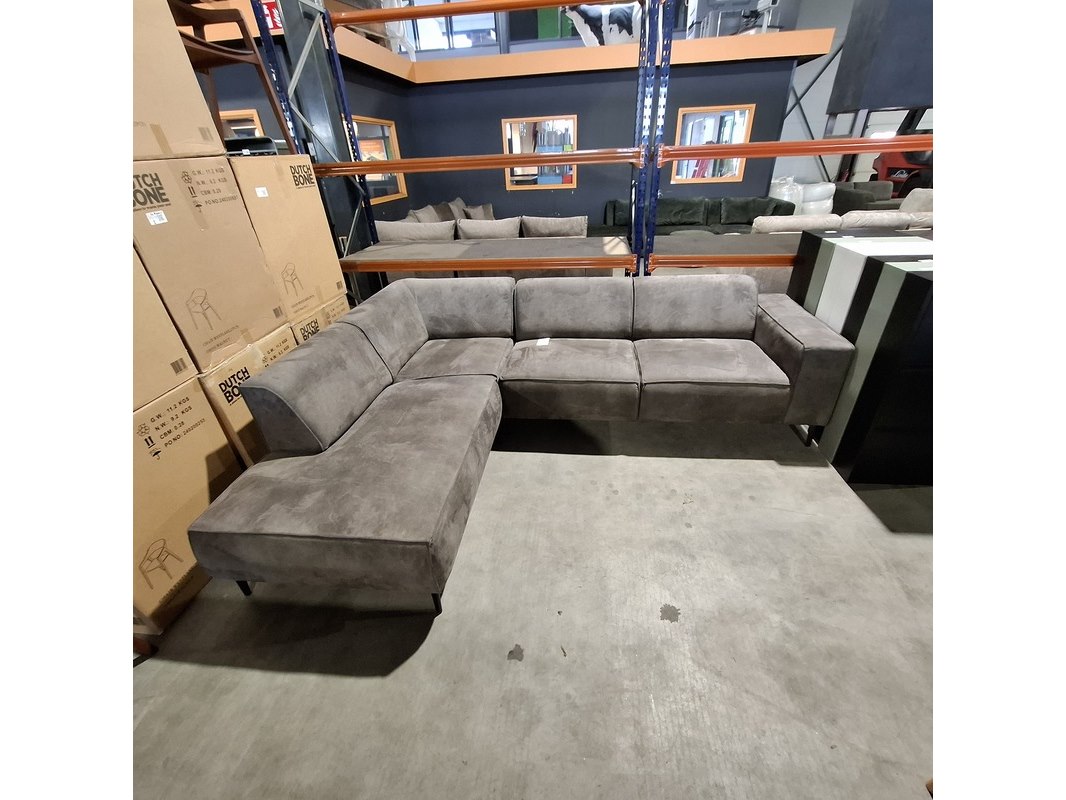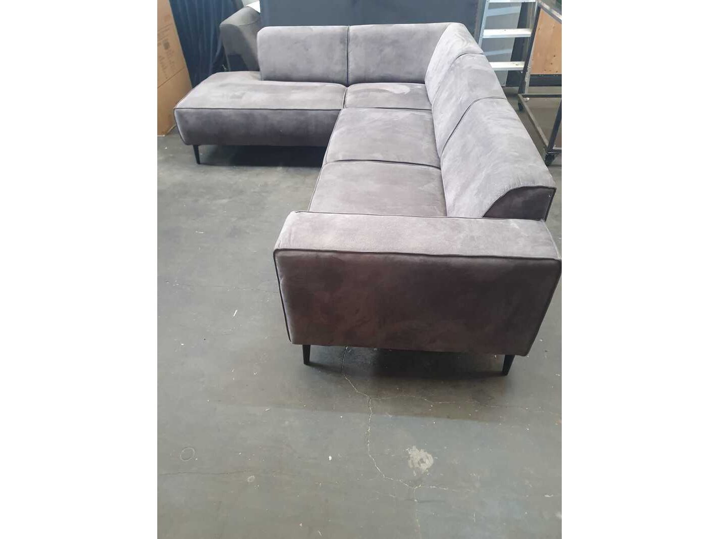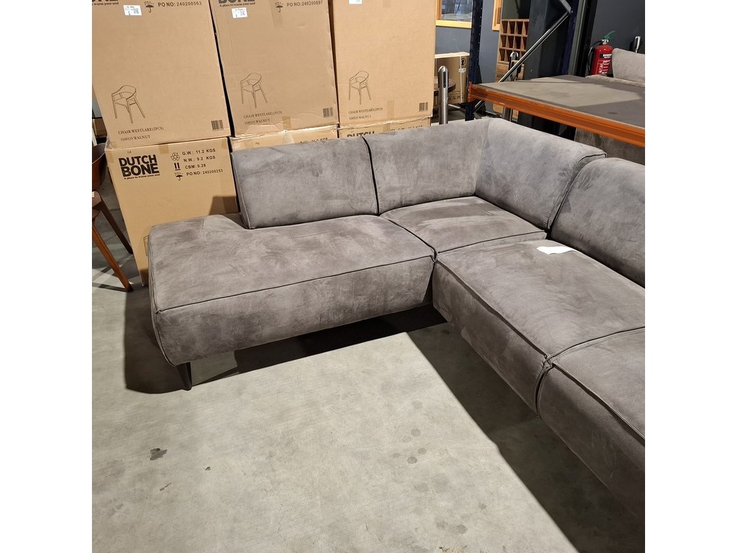 Product: Hoekbank Kleur: Donkergrijs / Antraciet Conditie: Nieuw Specificaties: Dit betreft een showroom model