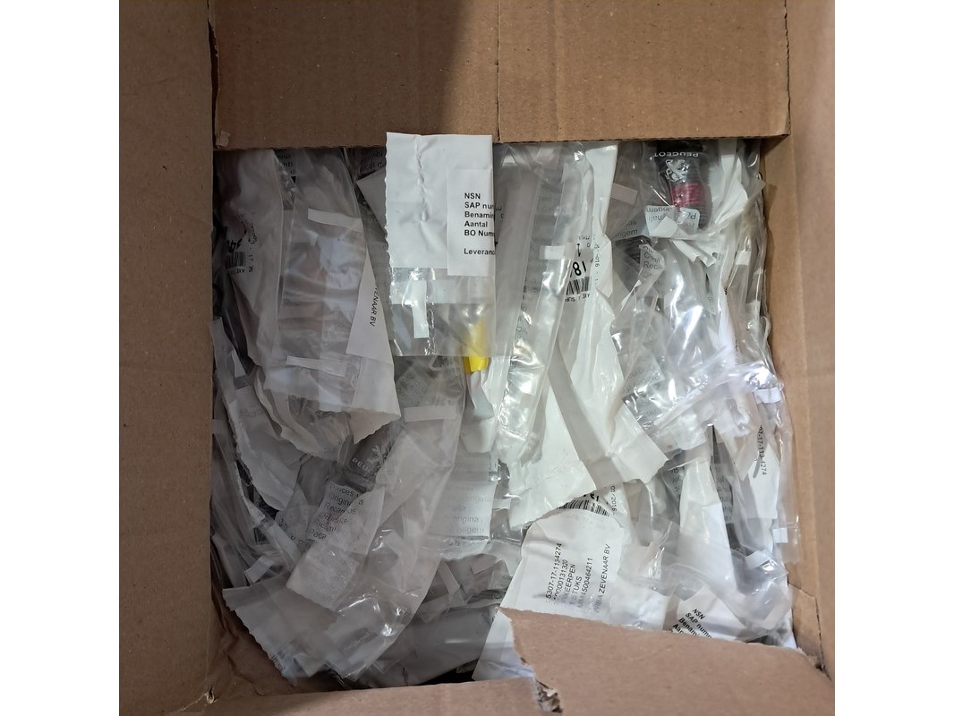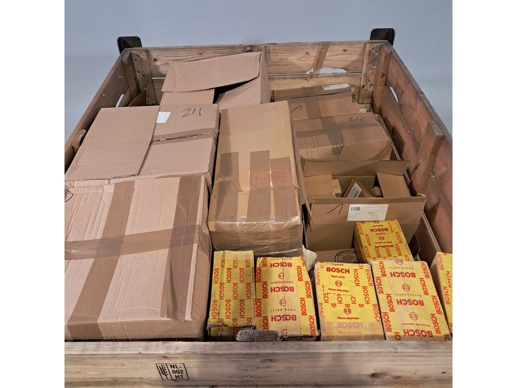 Product: Partij vrachtwagen onderdelen Specificaties: Bestaande uit o.a. slang samenstel NSN 4720-12-329-0140 Bosch relais, ijzerwaren, diverse stekkers, leiding klemmen, fixeer pennen, etc Technische staat en compleetheid onbekend. Exclusief palletkist.