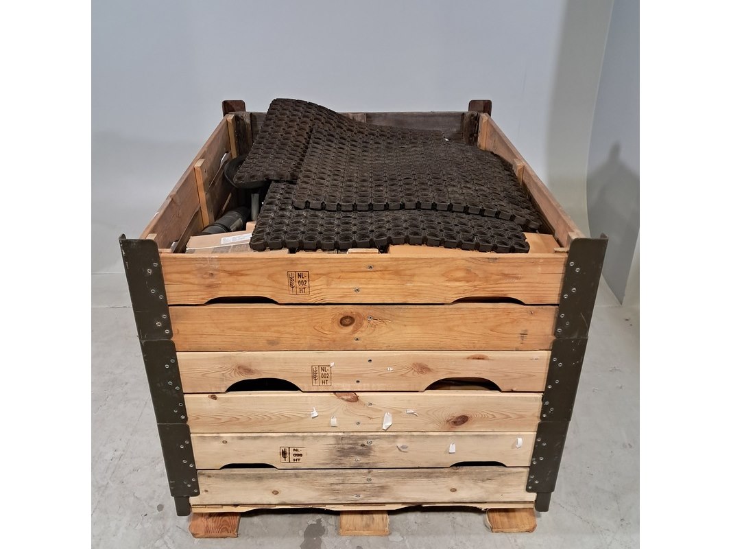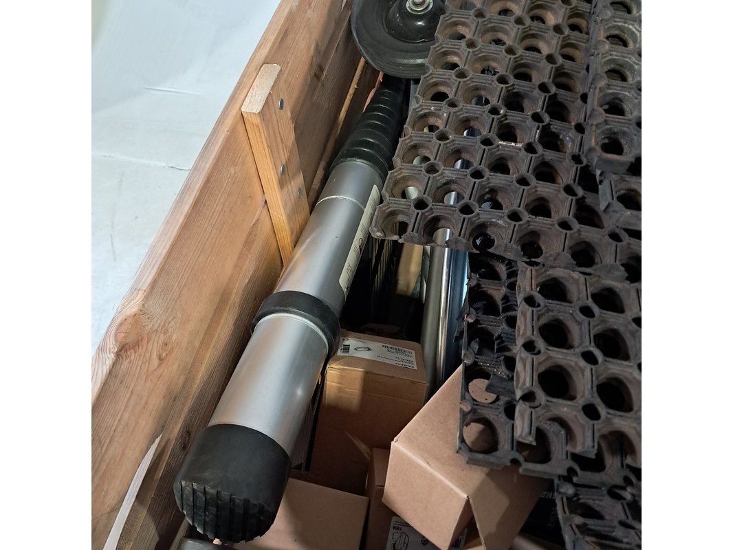 Product: Partij diversen Specificaties: Bestaande uit o.a. Harp sluitingen, slangen haspel, rubberen matten, telescoop ladder, lucht klep servo motor, grond bemonstering profielen, etc Technische staat en compleetheid onbekend. Exclusief palletkist.