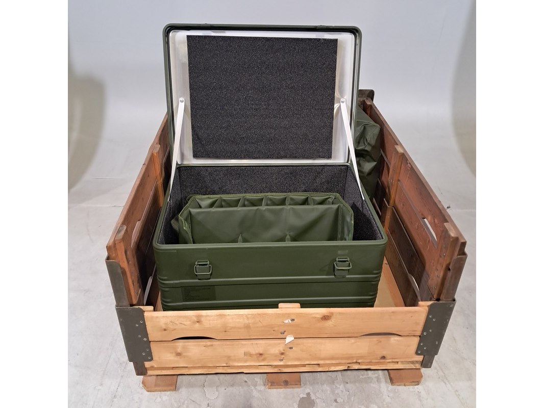 Product: Transportkoffer en 1x tas Afmeting: o.a. kist lxbxh ca. 78x57x40 cm Specificaties: kist lxbxh ca. 78x57x40 cm kist lxbxh ca. 58x38x40 cm tas lxb ca. 50x28x34 cm Technische staat en compleetheid onbekend. Exclusief palletkist.