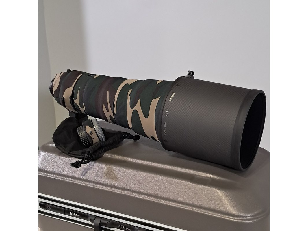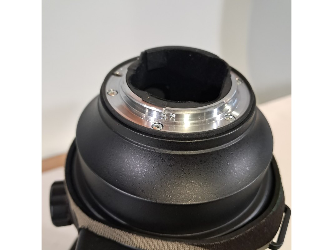 Merk: Nikon Product: Cameralens Afmeting: Lengte ca. 38 cm Specificaties: Uitgerust met zonnekap Nikon HK38 Bevestigingspunt camera gebroken.