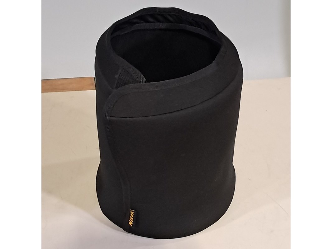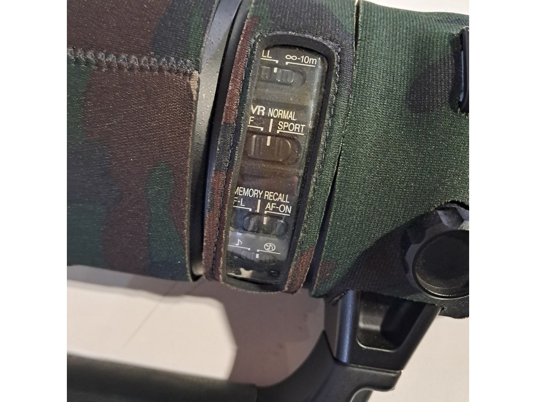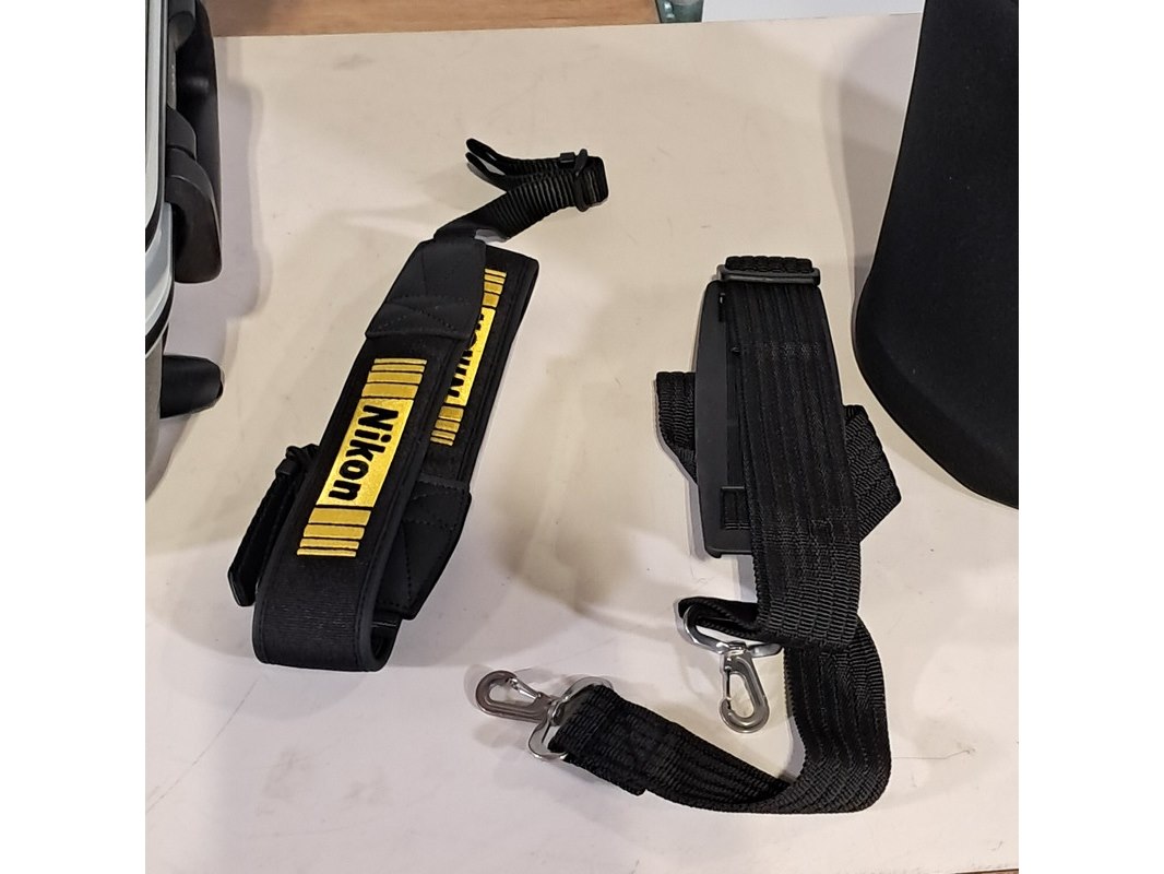 Merk: Nikon Product: Cameralens Afmeting: Lengte ca. 45 cm Specificaties: Uitgerust met zonnekap Nikon HK40 Bevestigingspunt camera gebroken.