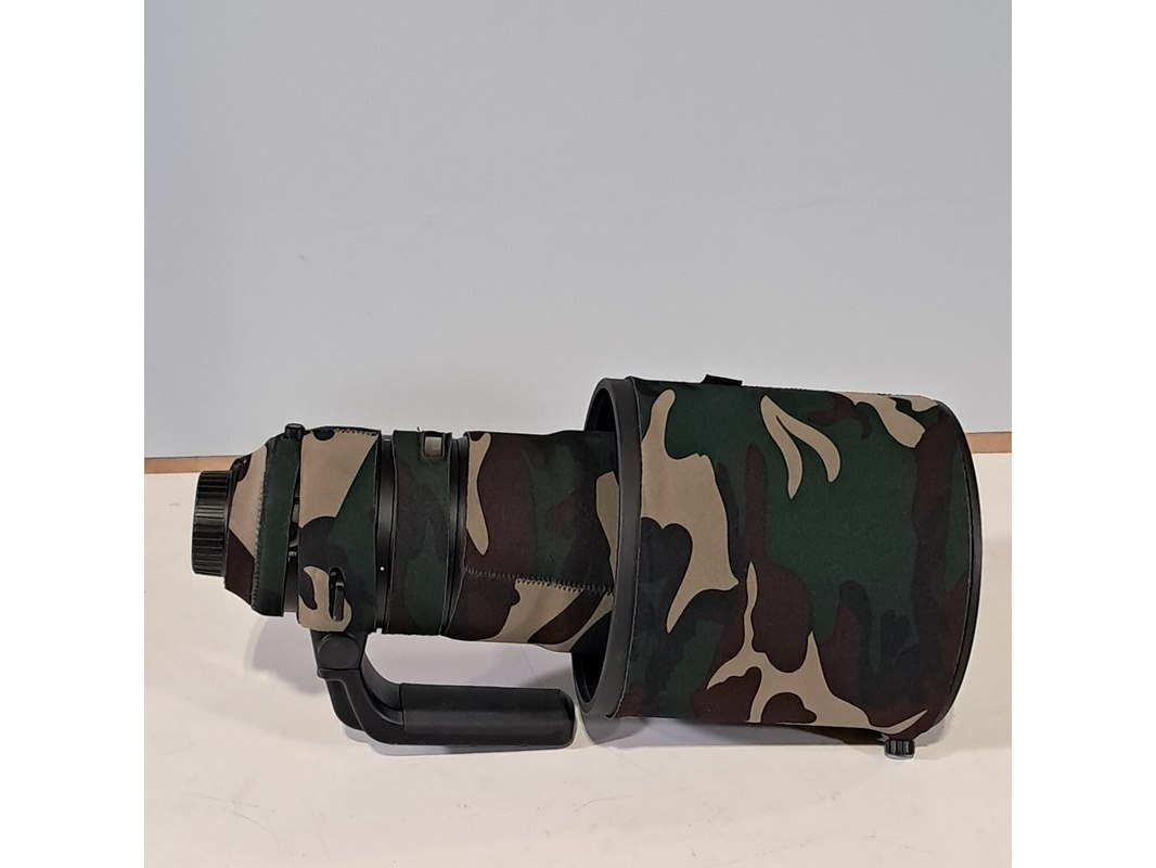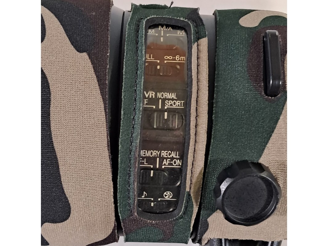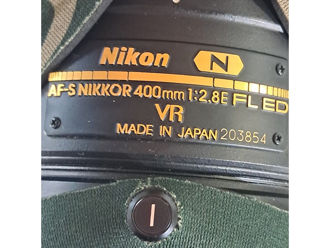 Merk: Nikon Product: Cameralens Afmeting: Lengte ca. 38 cm Specificaties: Uitgerust met zonnekap Nikon HK38 Bevestigingspunt camera gebroken.