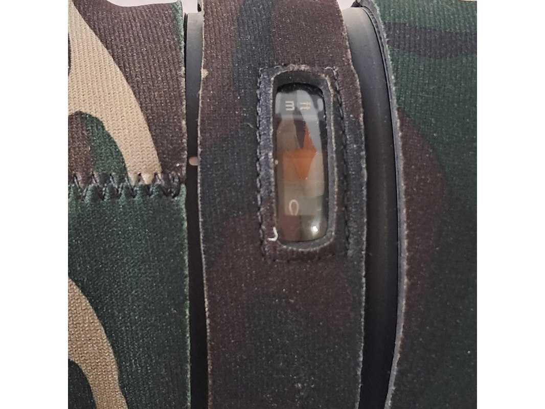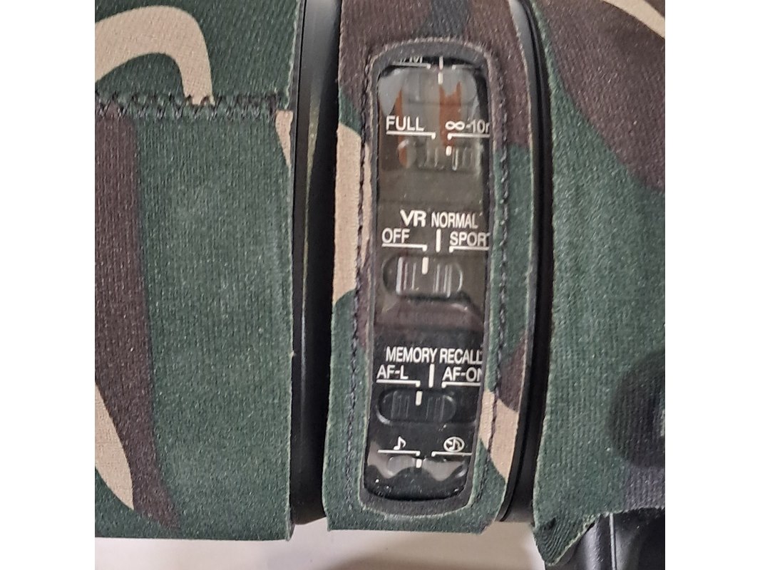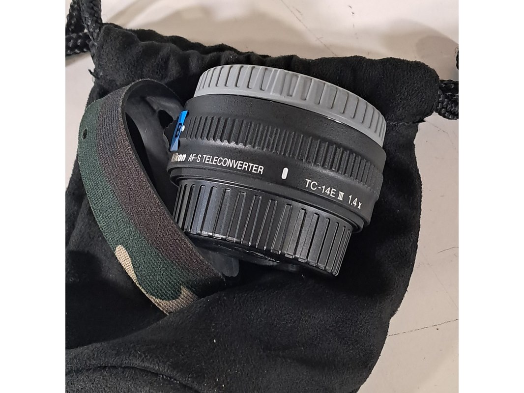Merk: Nikon Product: Cameralens Afmeting: Lengte ca. 45 cm Specificaties: Uitgerust met zonnekap Nikon HK40 Bevestigingspunt camera gebroken.