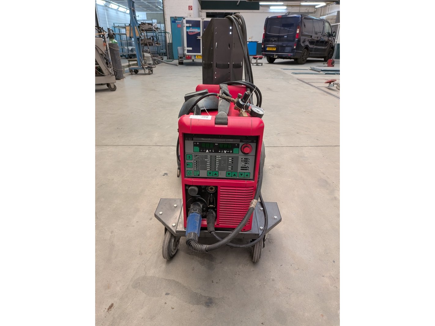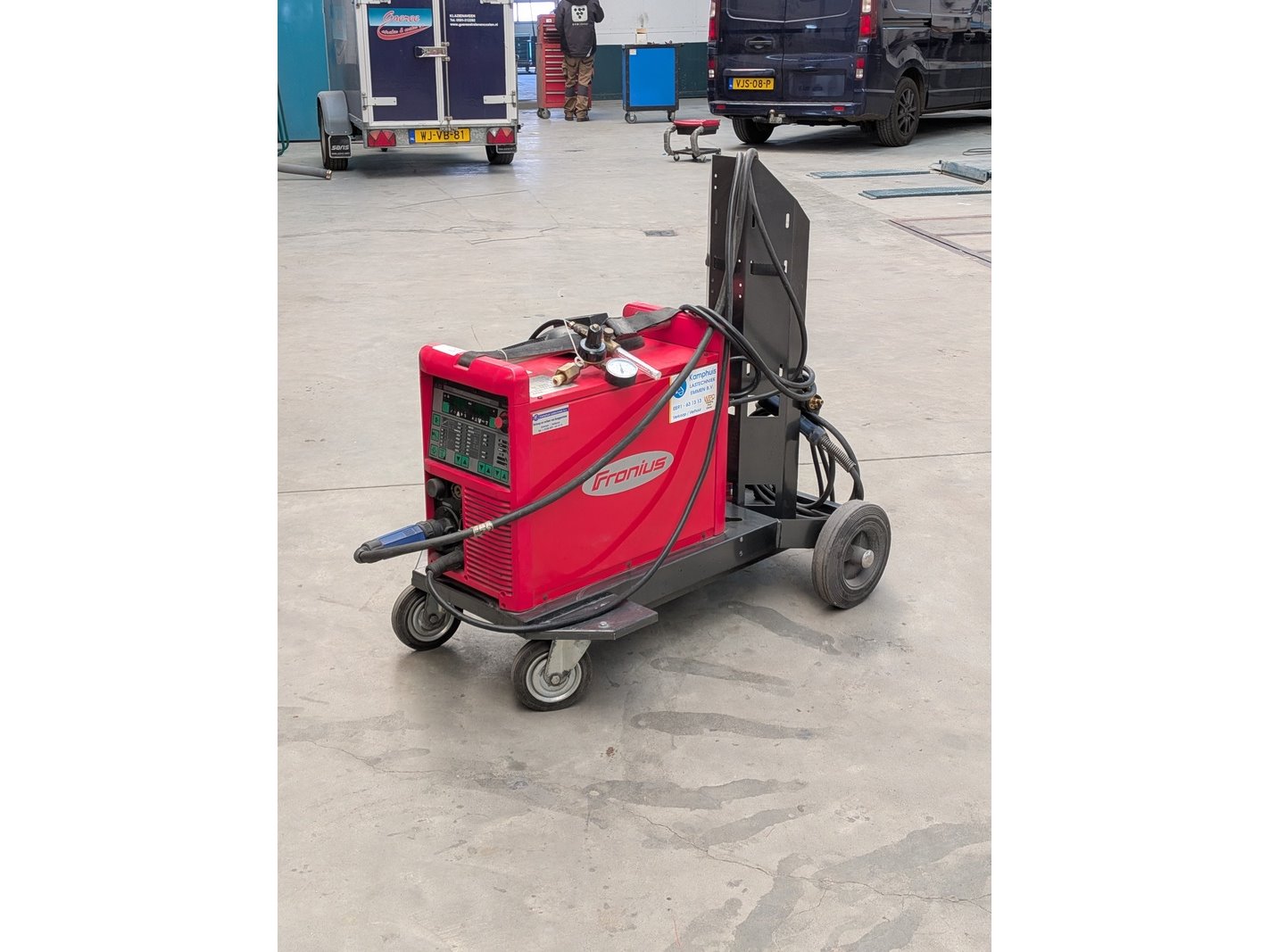 Merk: Fronius Product: Lasapparaat Specificaties: 400V inclusief lastoorts, drukventiel, massaklem