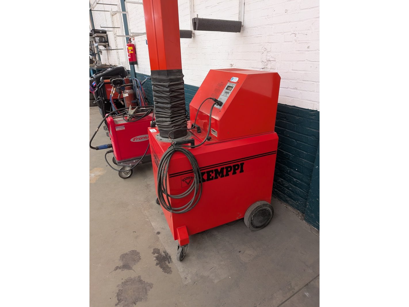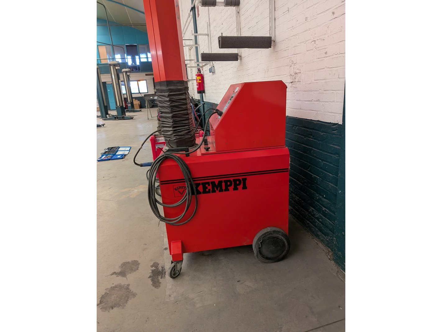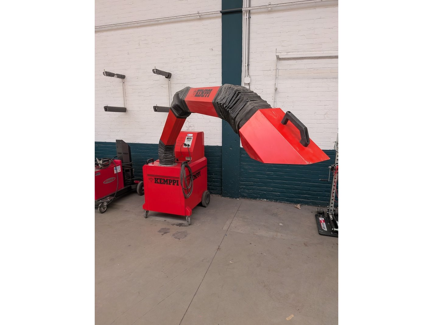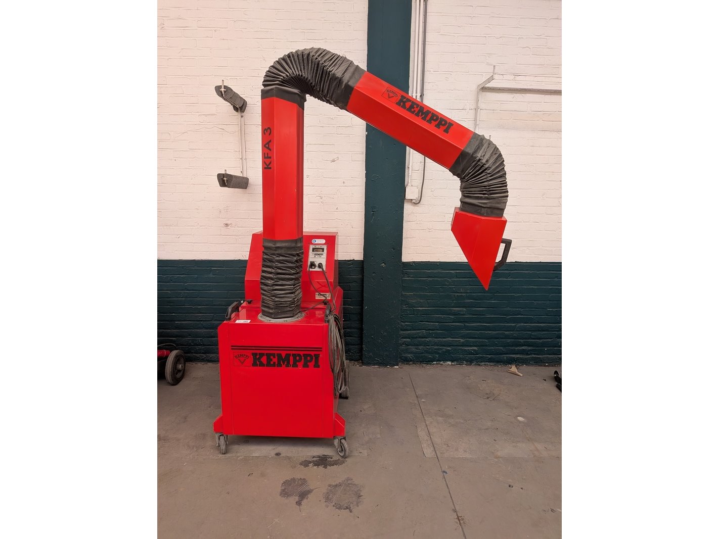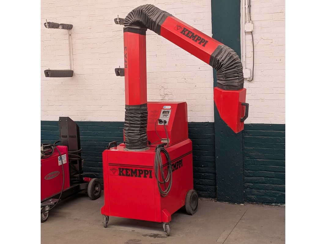 Merk: Kemppi Product: Mobiele lasdampafzuiging Afmeting: hxbxd ca. 212x80x83cm, lengte arm ca. 260cm Specificaties: 380V, 1150W, exclusief stekker