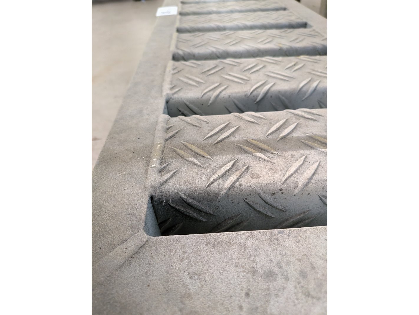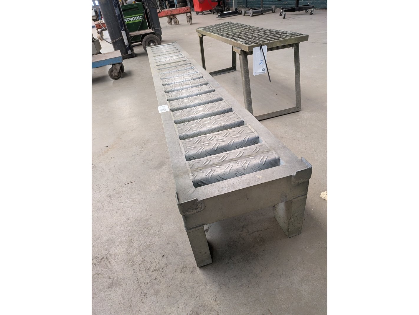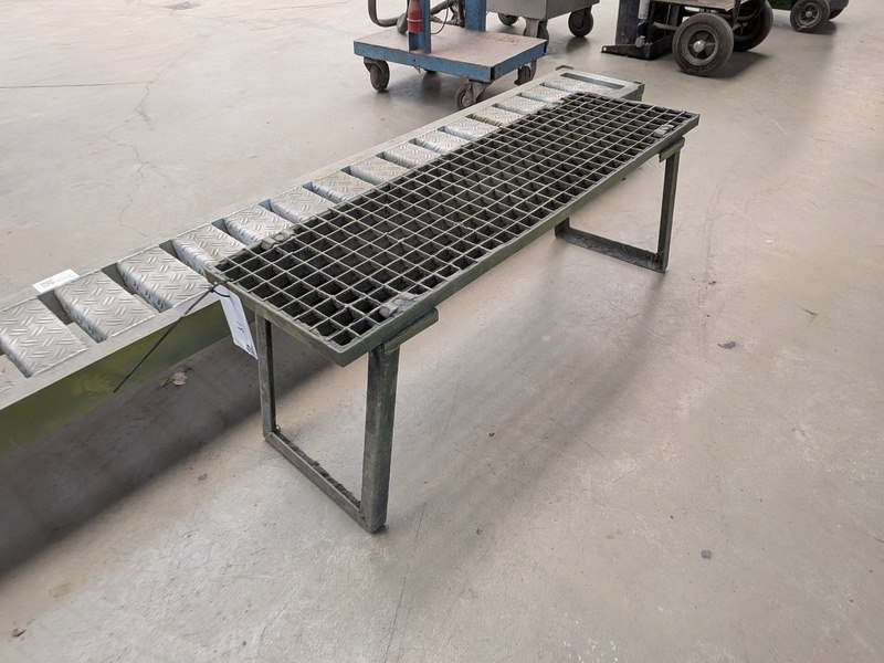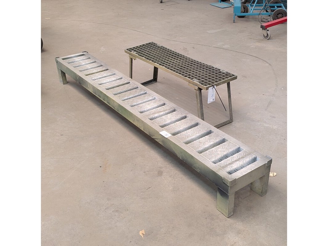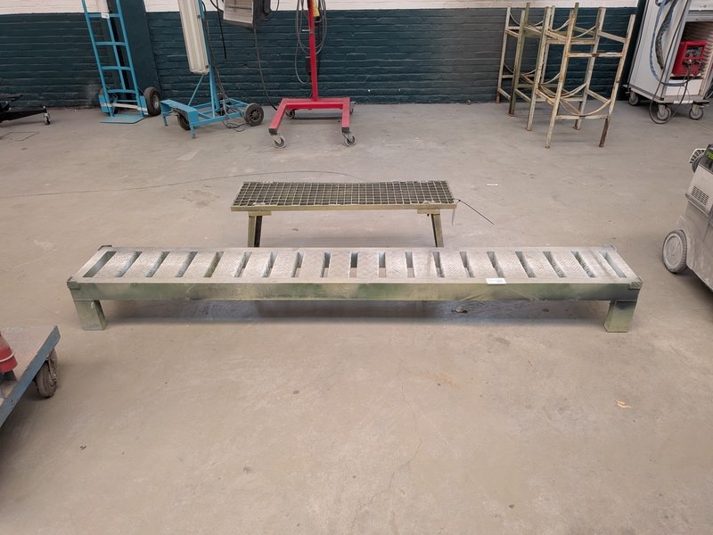 Product: Opstapje Materiaal: metaal en aluminium Afmeting: 1x breedte ca. 220cm en ca. 100cm