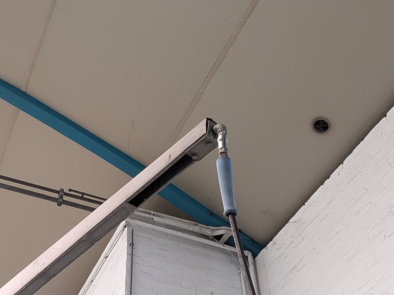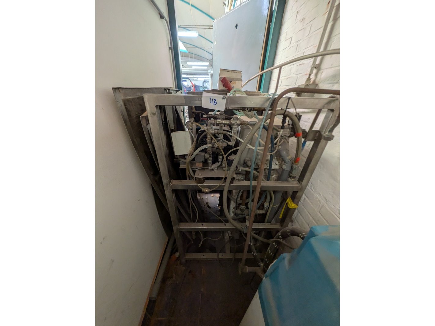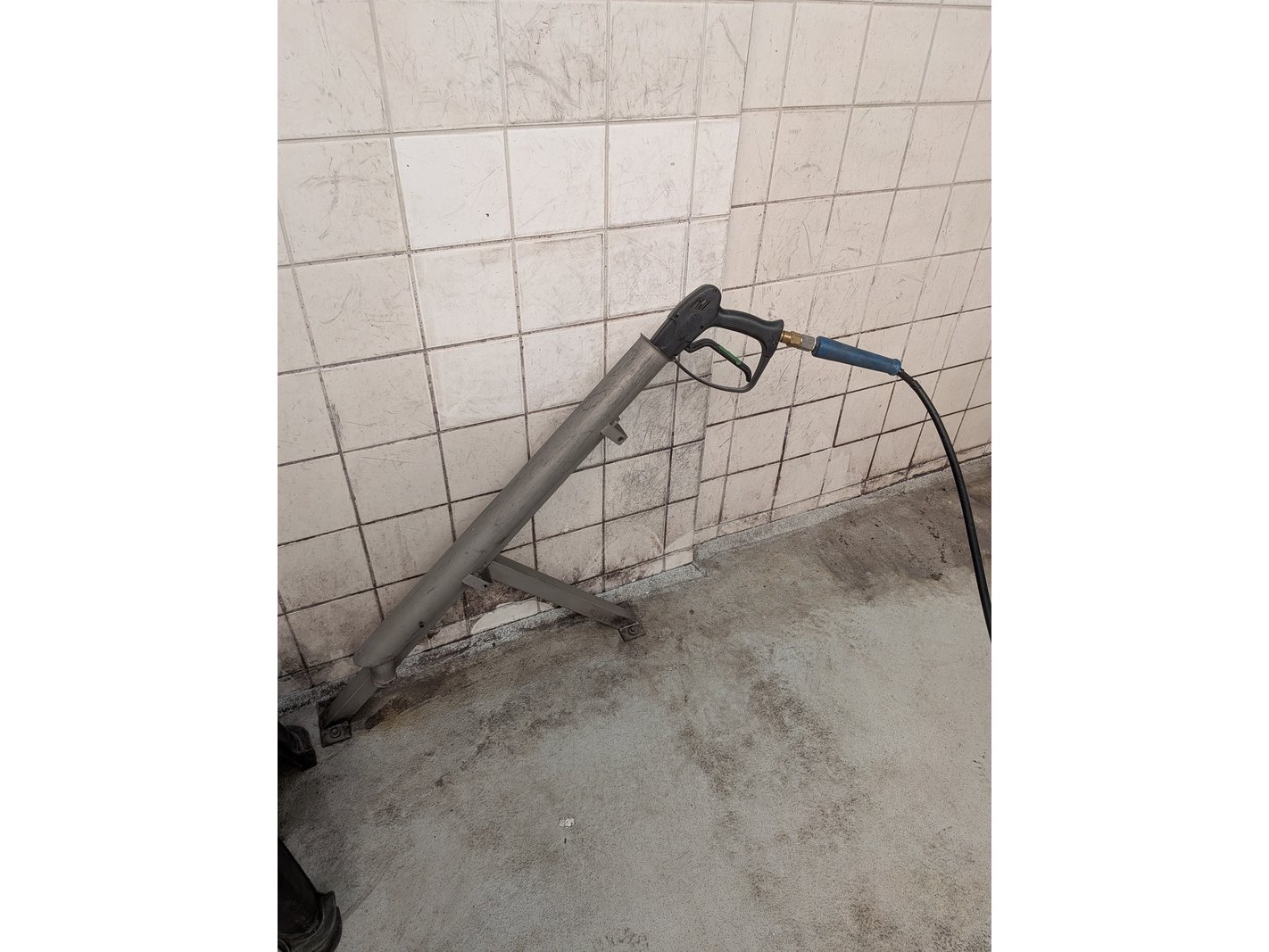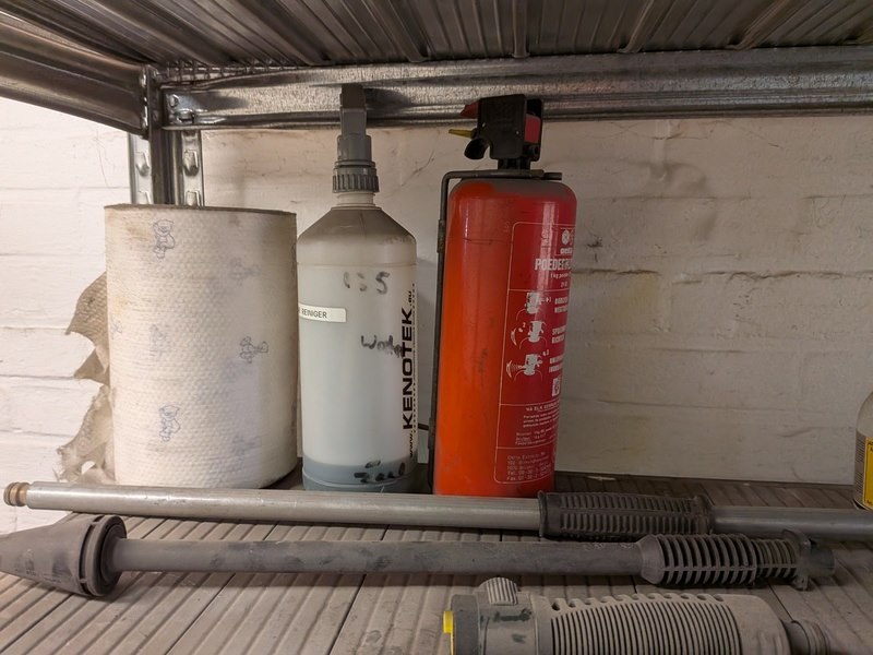 Merk: Savona Product: Hogedrukreiniger set Specificaties: 380V, werking onbekend inclusief stelling met diverse schoonmaakprodukten en spuitlans met zwenkarm (hangt op ca. 350cm hoogte), bediening unit