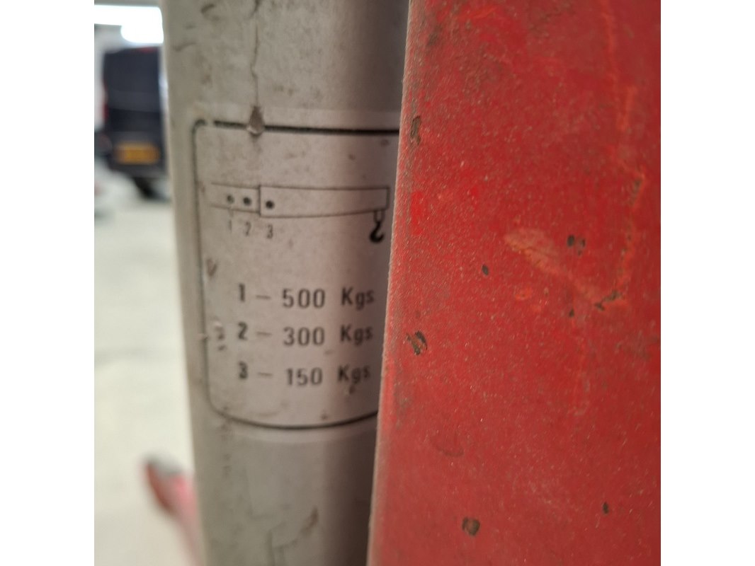 Merk: Mega Product: Motortakel 500 kilo Afmeting: max hefhoogte ca. 210cm
